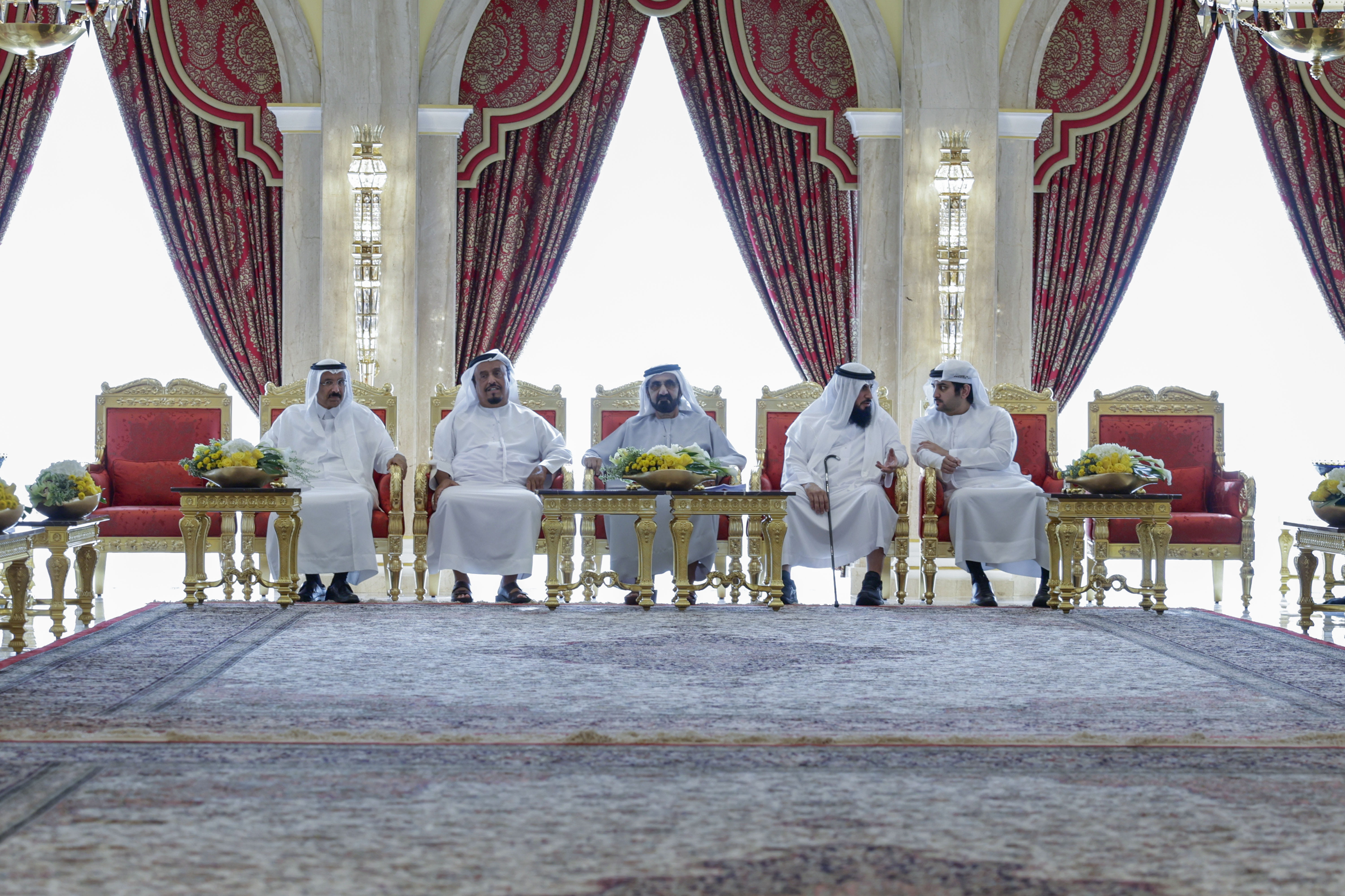His Highness’s weekly Majlis at Zabeel Palace in Dubai was attended by His Highness Sheikh Maktoum bin Mohammed bin Rashid Al Maktoum, Deputy Ruler of Dubai, and Deputy Prime Minister and Minister of Finance of the UAE; His Highness Sheikh Ahmed bin Mohammed bin Rashid Al Maktoum, Chairman of the Dubai Media Council, and Sheikhs, ministers, and heads of government entities.