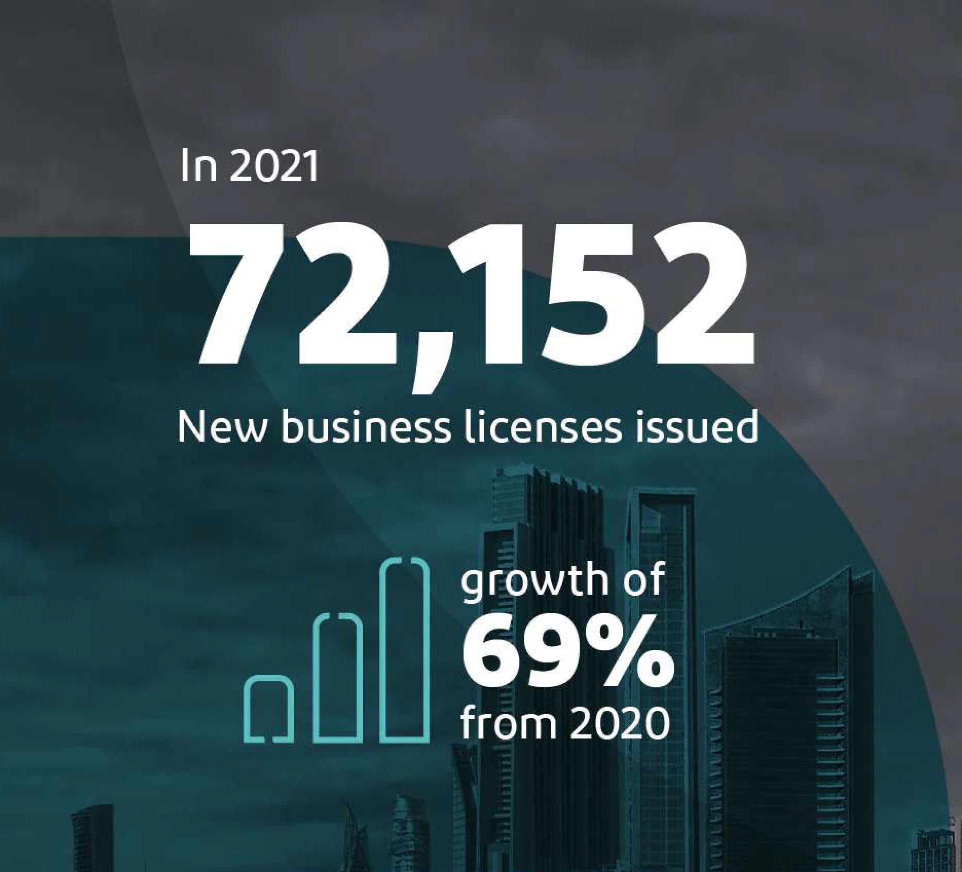 Dubai issues 72,152 new business licences in 2021, a growth of 69% compared to 2020