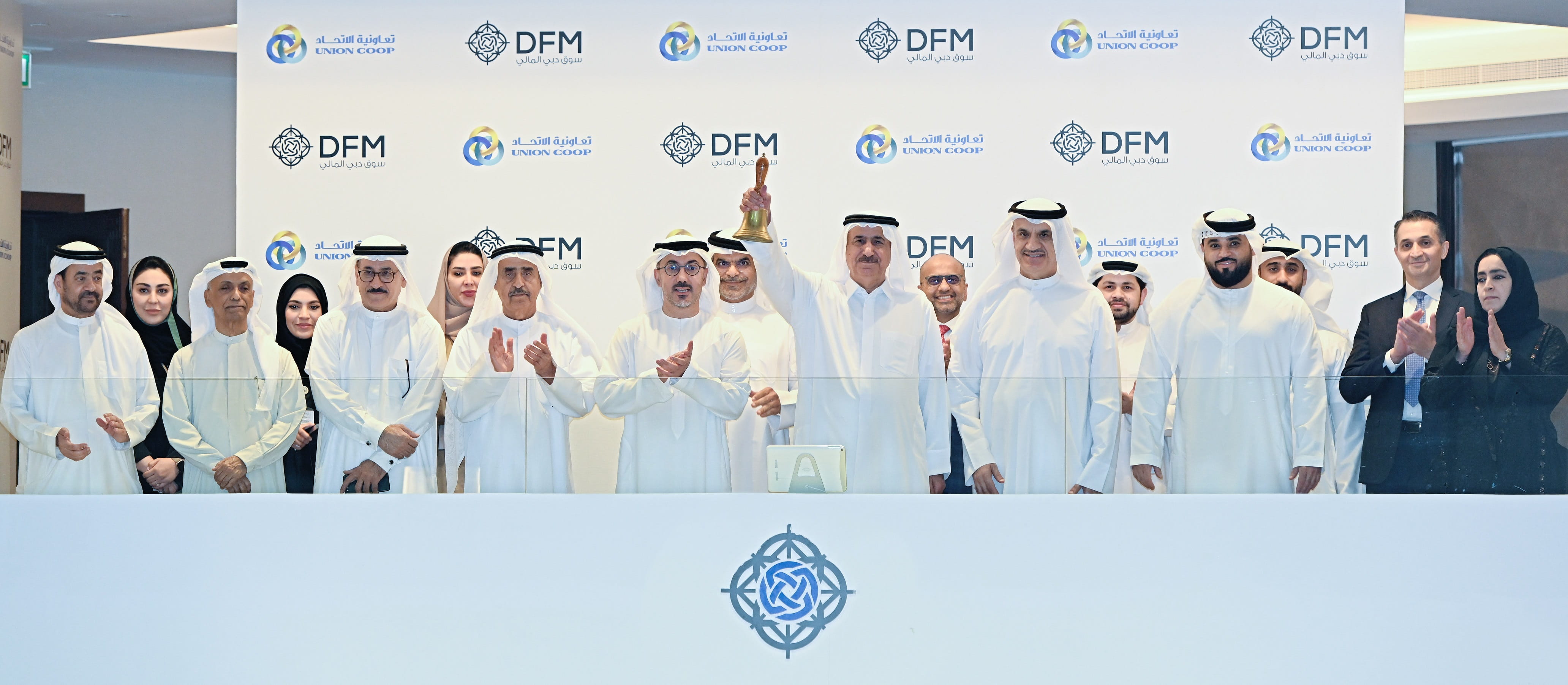 Dubai Financial Market (DFM) today welcomed the listing of Union Coop’s shares, becoming the first cooperative society in the UAE to take this pioneering step, in line with the Government’s decision pertaining to the trading of cooperative societies’ shares on financial markets, which aims to strengthen the regulatory environment for the cooperatives’ sector and reinforce competitiveness.