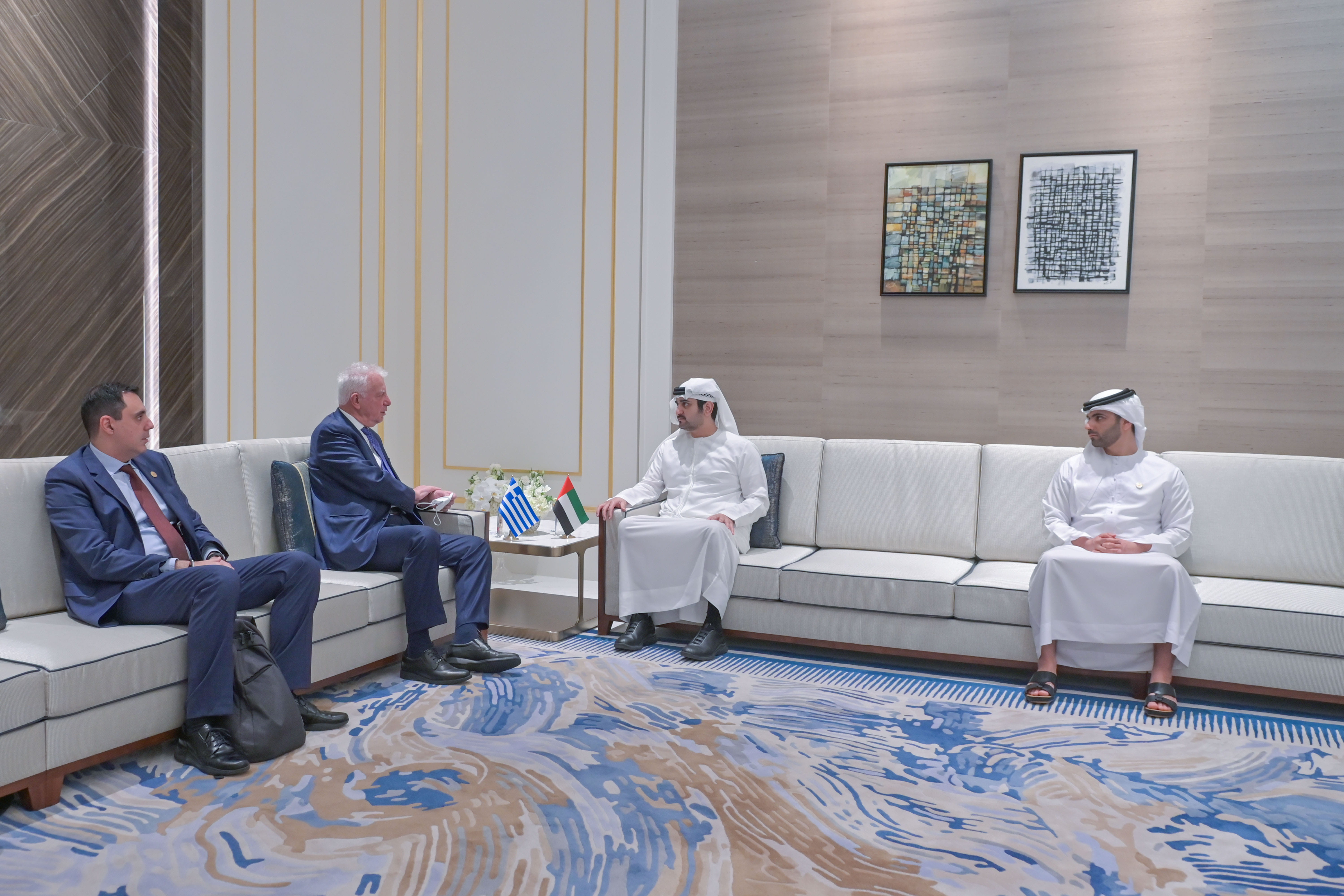 The meeting was attended by His Highness Sheikh Mansoor bin Mohammed bin Rashid Al Maktoum; Her Excellency Reem Al Hashimy, Minister of State for International Cooperation and Director General of Expo 2020 Dubai; and His Excellency Sulaiman Al Mazrouei, the UAE Ambassador to Greece.