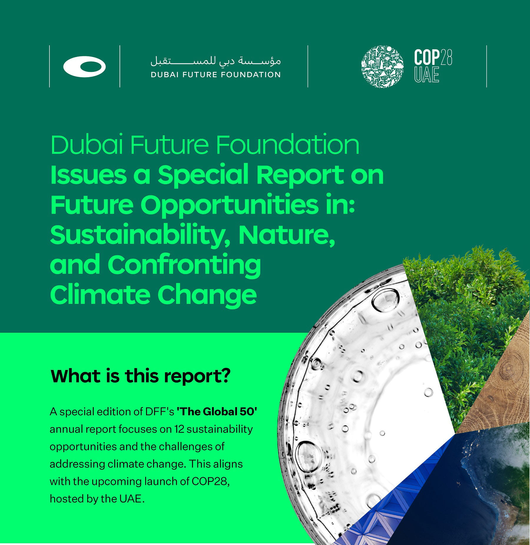Dubai Future Foundation (DFF) today published a special COP28 edition of the “Future Opportunities Report: The Global 50.” Coinciding with the lead-up to COP28, this special edition identifies 12 opportunities that directly or indirectly relate to nature, with the potential to advance climate mitigation, adaptation, and resilience.