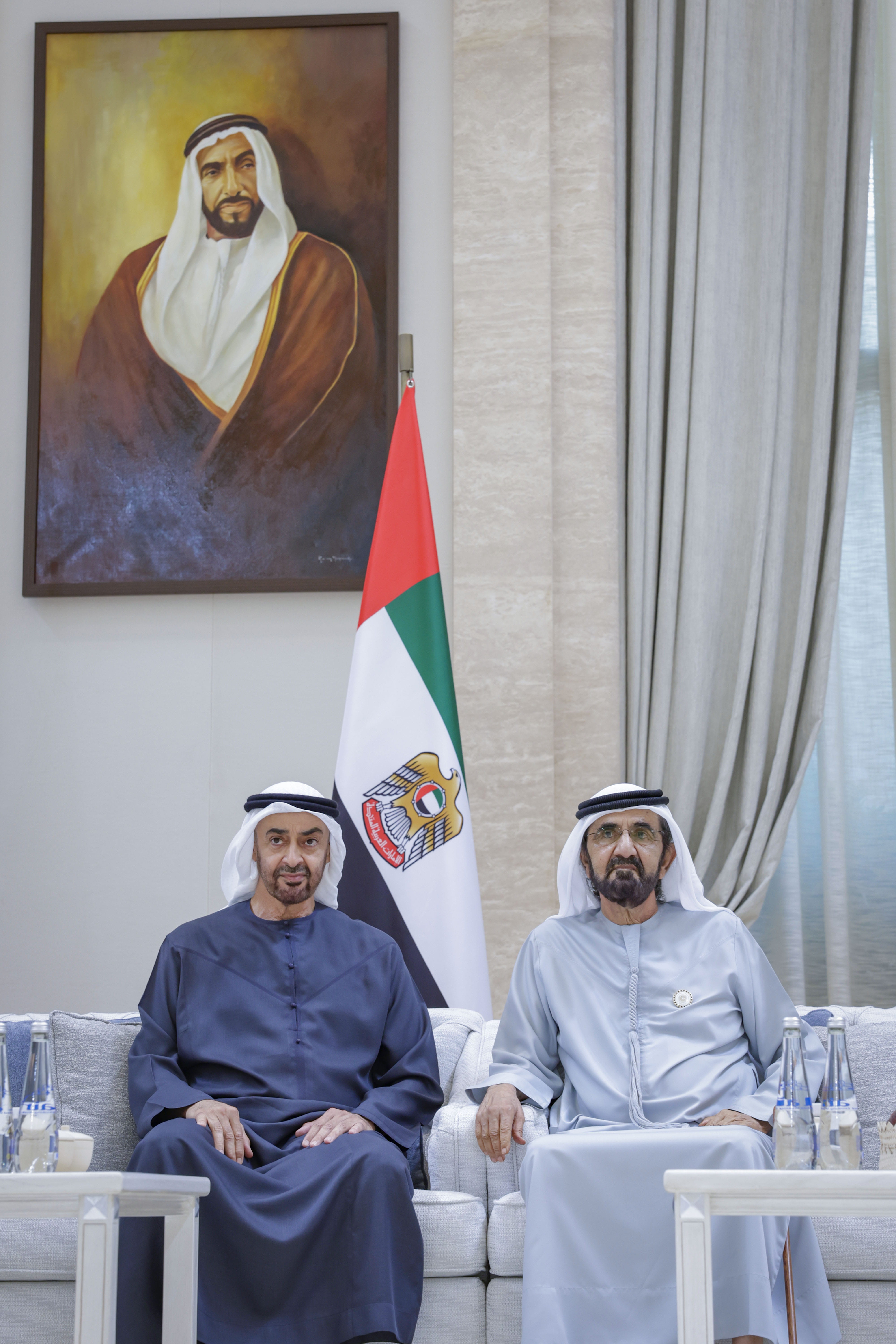 President His Highness Sheikh Mohamed bin Zayed Al Nahyan and His Highness Sheikh Mohammed bin Rashid Al Maktoum, Vice President and Prime Minister of the UAE and Ruler of Dubai, today attended the Al Nahyan weddings at Qasr Al Mushrif in Abu Dhabi, part of numerous group weddings held across the country under the patronage of the Presidential Court.