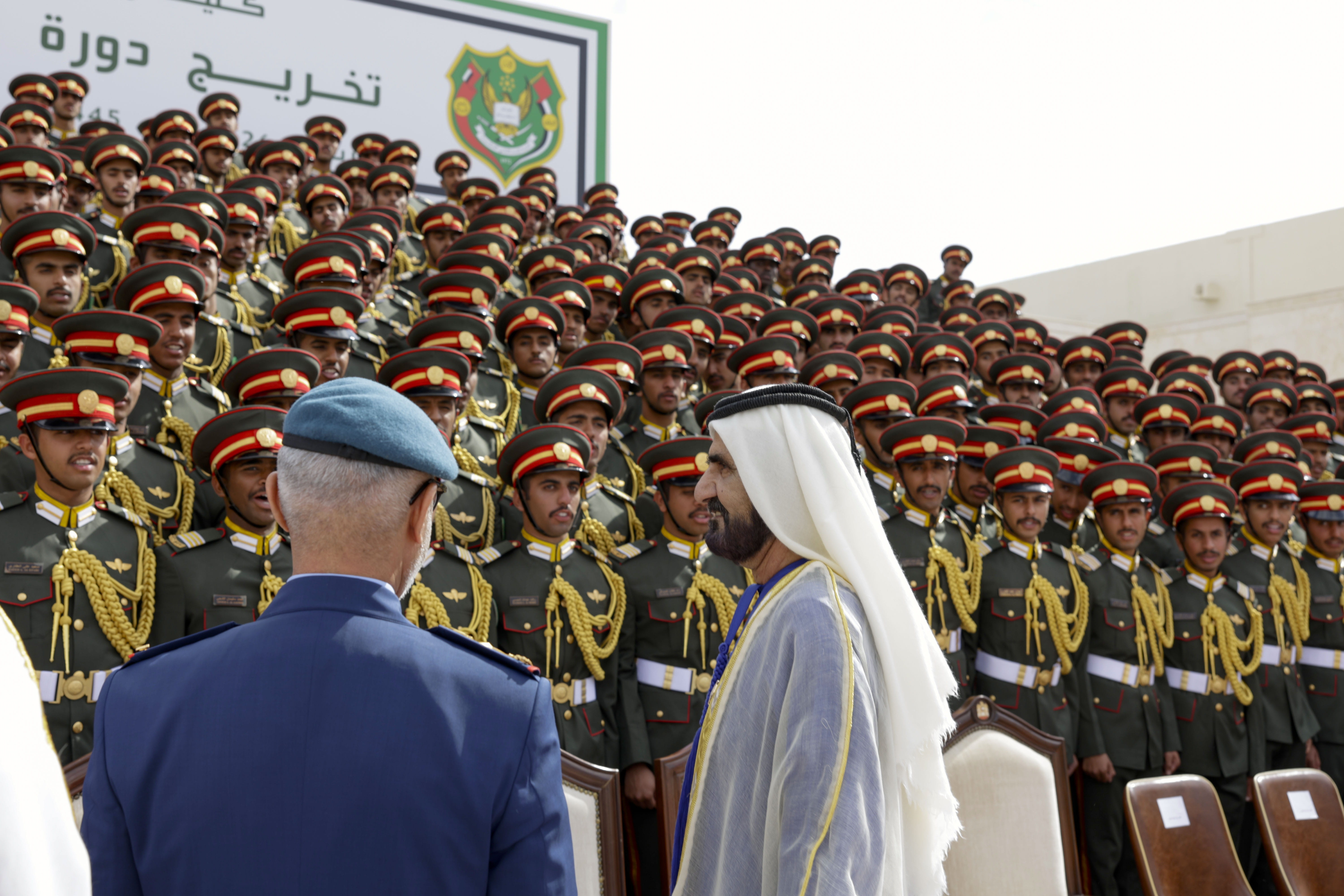 His Highness Sheikh Mohammed bin Rashid Al Maktoum, Vice President and Prime Minister of the UAE and Ruler of Dubai, today attended the graduation ceremony of the 48th cohort of cadet officers of the Zayed II Military College in Al Ain, in the presence of His Highness Sheikh Mansoor bin Mohammed bin Rashid Al Maktoum, Chairman of the Dubai Ports and Borders Security Council.