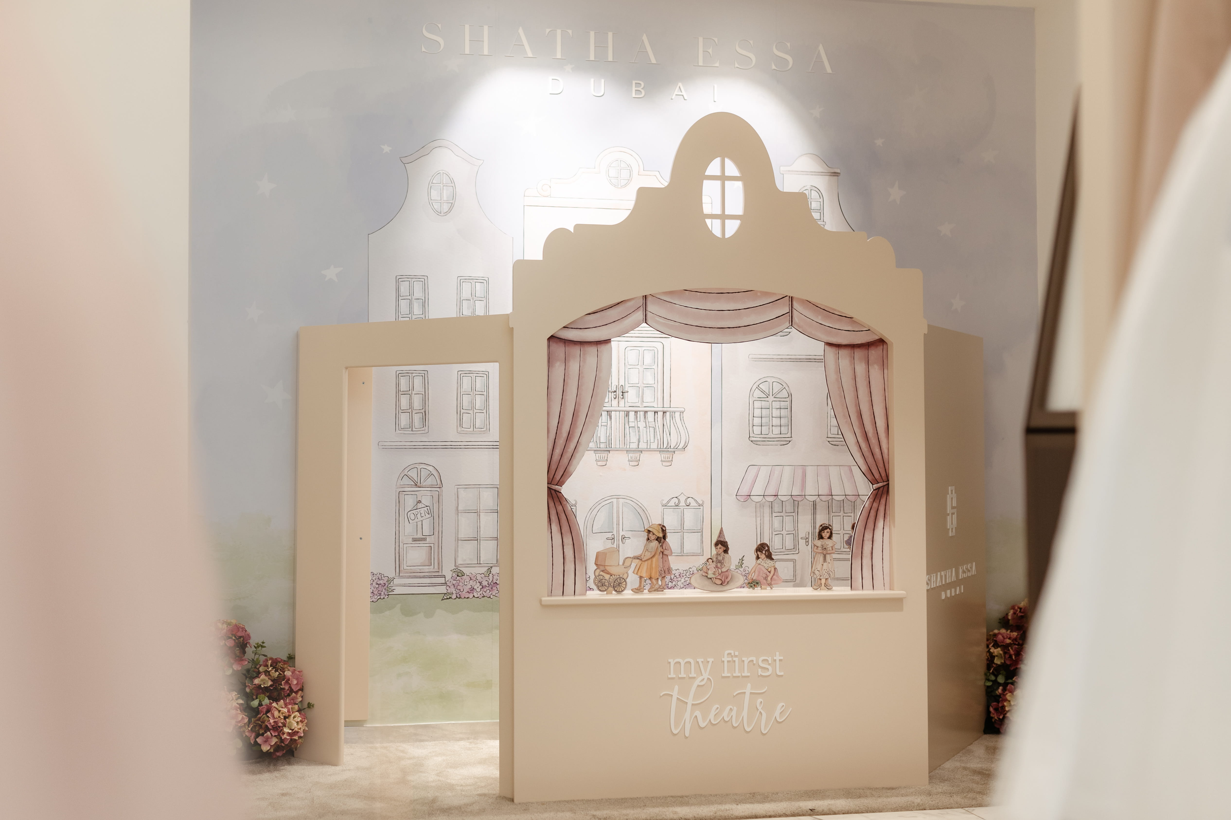 The space was meticulously designed by Shatha herself, aiming to create an ambiance reminiscent of a delightful birthday party. Here, children are invited to role-play and dress up dolls in beautiful dresses that mirror the ones available for them. Additionally, an interactive theatre showcases illustrations of the dresses in various settings, allowing kids to immerse themselves in a whimsical environment and enjoy collaborative play.