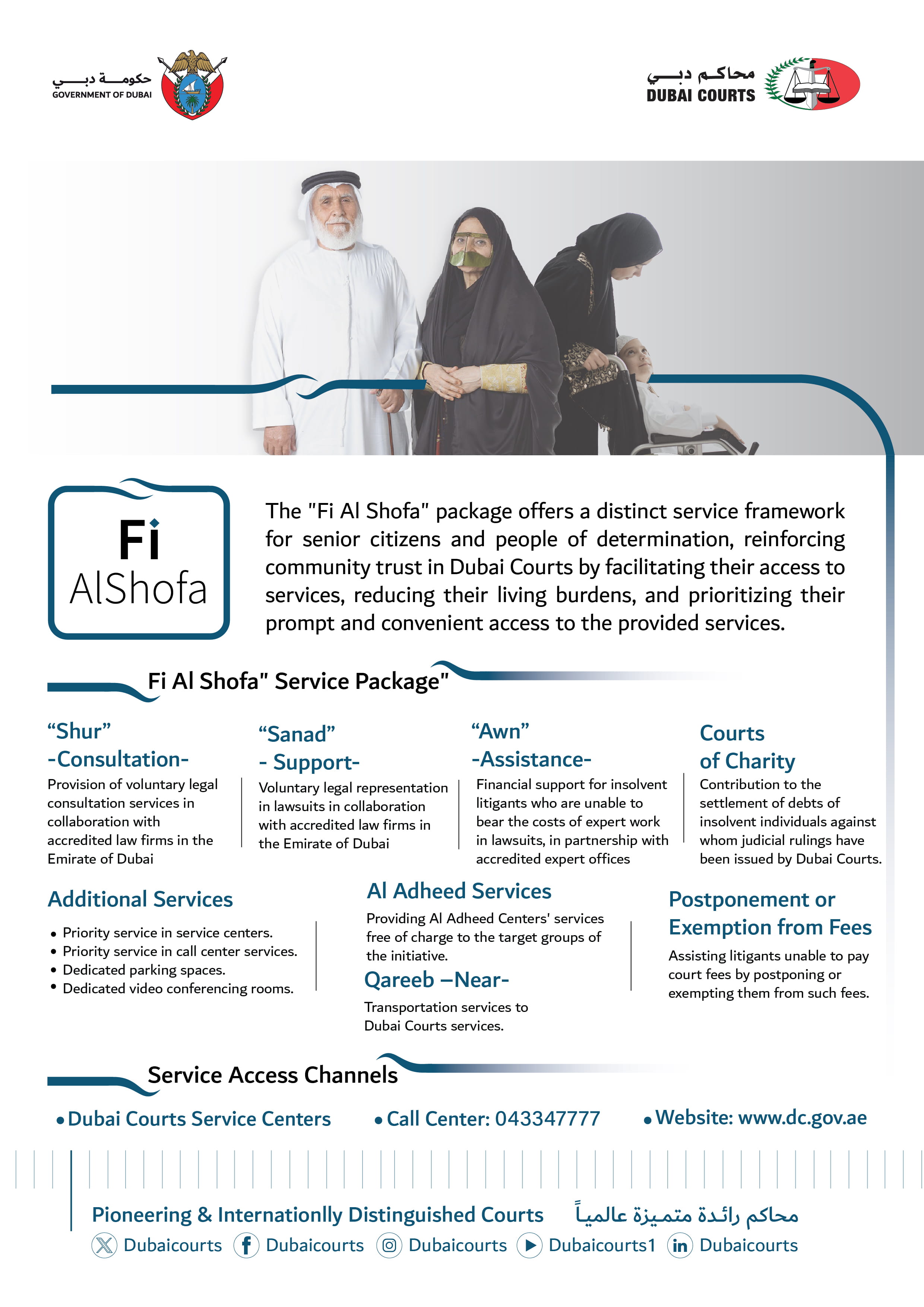 Dubai Courts today announced the launch of an integrated package of services aimed at facilitating and streamlining judicial procedures for senior citizens and people of determination.