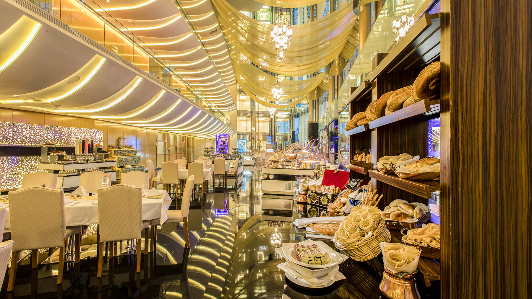 An Arabesque set-up amidst the clouds, SLS Dubai is serving panoramic vistas of the city with its Iftar served at an opulent Ramadan tent on the 75th floor. Adorned with plush seating, colourful lanterns and traditional carpets, this is one of the most luxurious tents in the city.