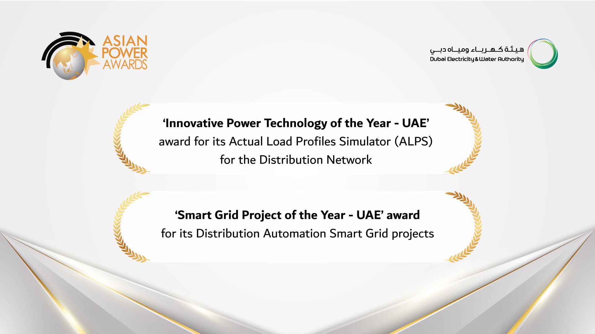 DEWA received the ‘Innovative Power Technology of the Year - UAE’ award for its Actual Load Profiles Simulator (ALPS) for the Distribution Network and the ‘Smart Grid Project of the Year - UAE’ award for its Distribution Automation Smart Grid projects.