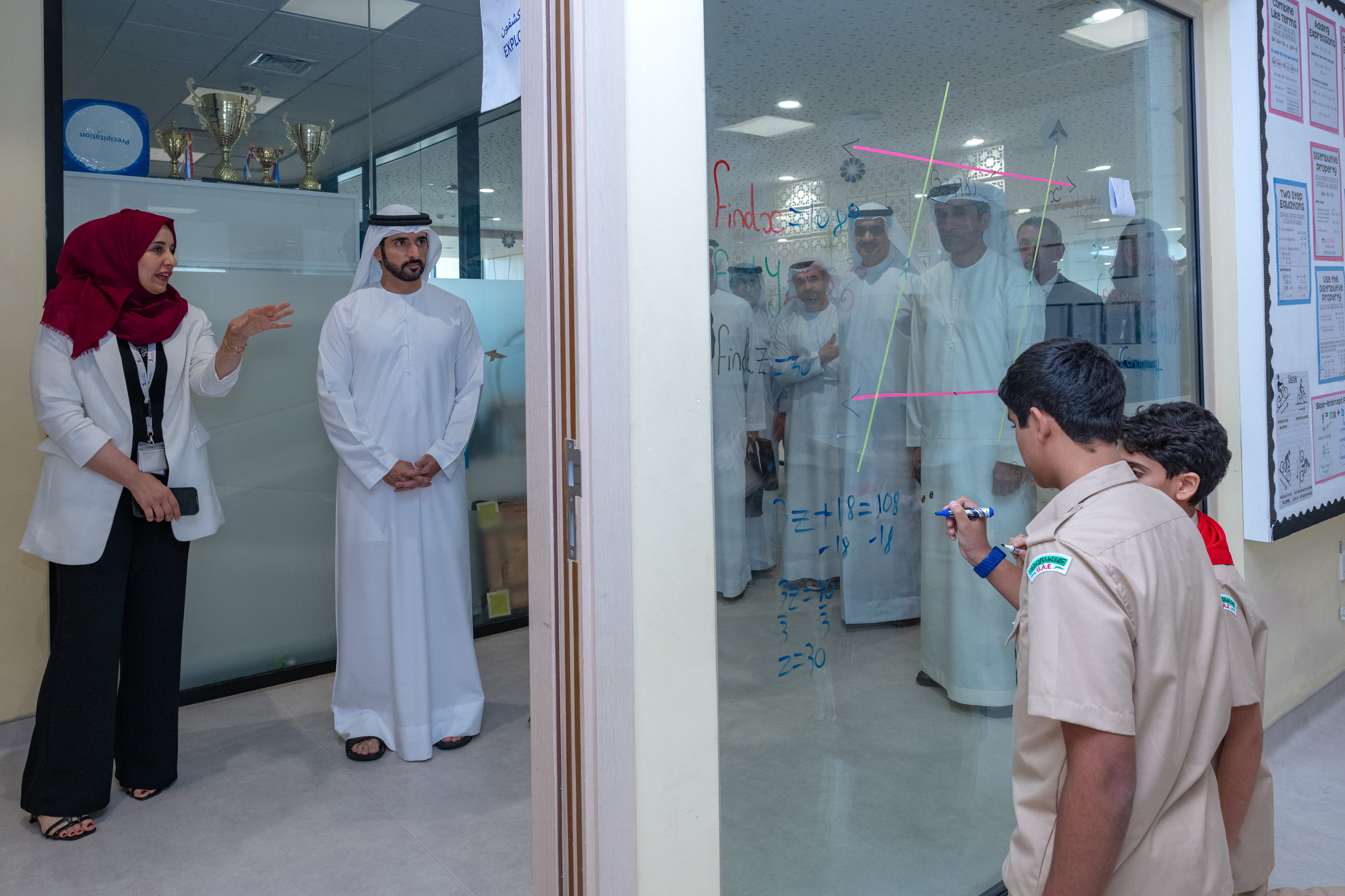 His Highness Sheikh Hamdan was accompanied by His Excellency Abdulla Mohammed Al Basti, Secretary-General of The Executive Council of Dubai and Chairman of the Dubai Schools Steering Committee; and His Excellency Ahmad AbdulKarim Julfar, Chairman of the Board, Knowledge Fund Establishment, and member of the Dubai Schools Steering Committee.