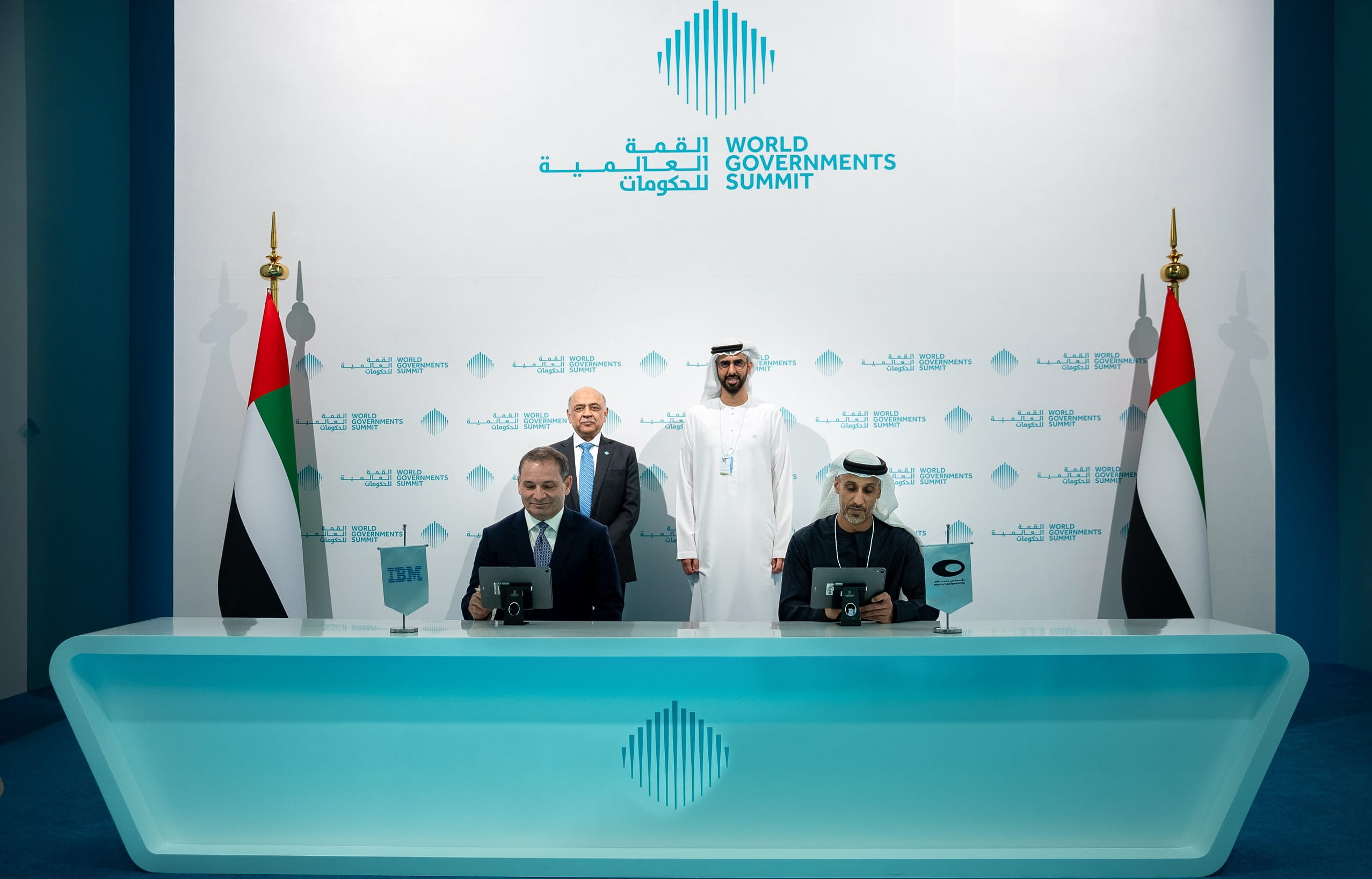 The MOU was signed in the presence of His Excellency Omar Sultan AlOlama, Minister of State for Artificial Intelligence, Digital Economy, and Remote Work Applications, Vice-Chair of the World Governments Summit and Deputy Managing Director of Dubai Future Foundation, Arvind Krishna, Chairman and CEO of IBM, Saad Toma, General Manager of IBM Middle East and Africa and His Excellency Khalfan Belhoul, CEO of DFF.