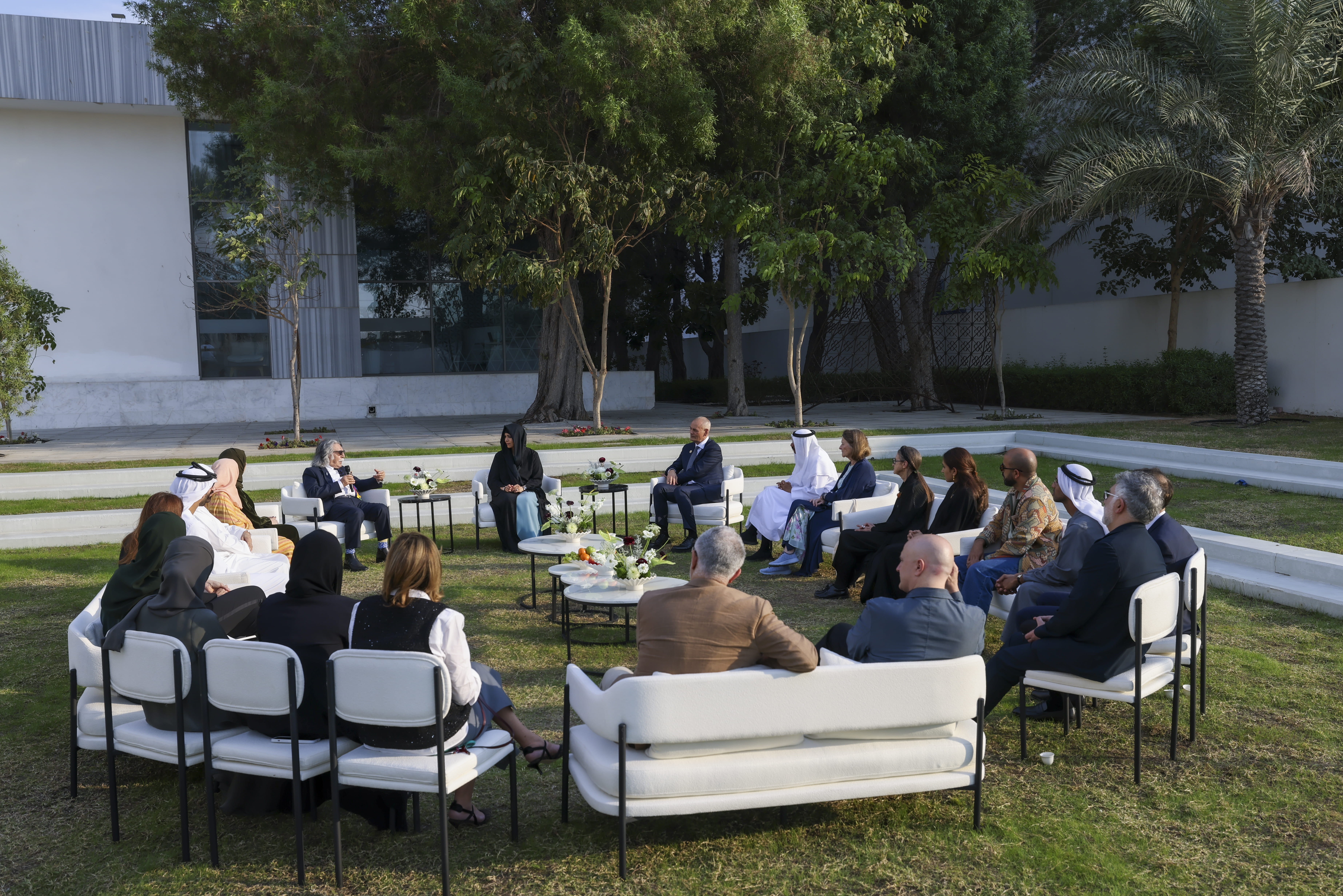 Her Highness Sheikha Latifa bint Mohammed bin Rashid Al Maktoum, Chairperson of the Dubai Culture and Arts Authority, met with Jordanian architect Sahel Al Hayari, recipient of the 2024 Great Arab Minds Award for Architecture and Design, and Iraqi multidisciplinary artist Dia Al-Azzawi, recipient of the 2024 Great Arab Minds Award in the Literature and Arts category.