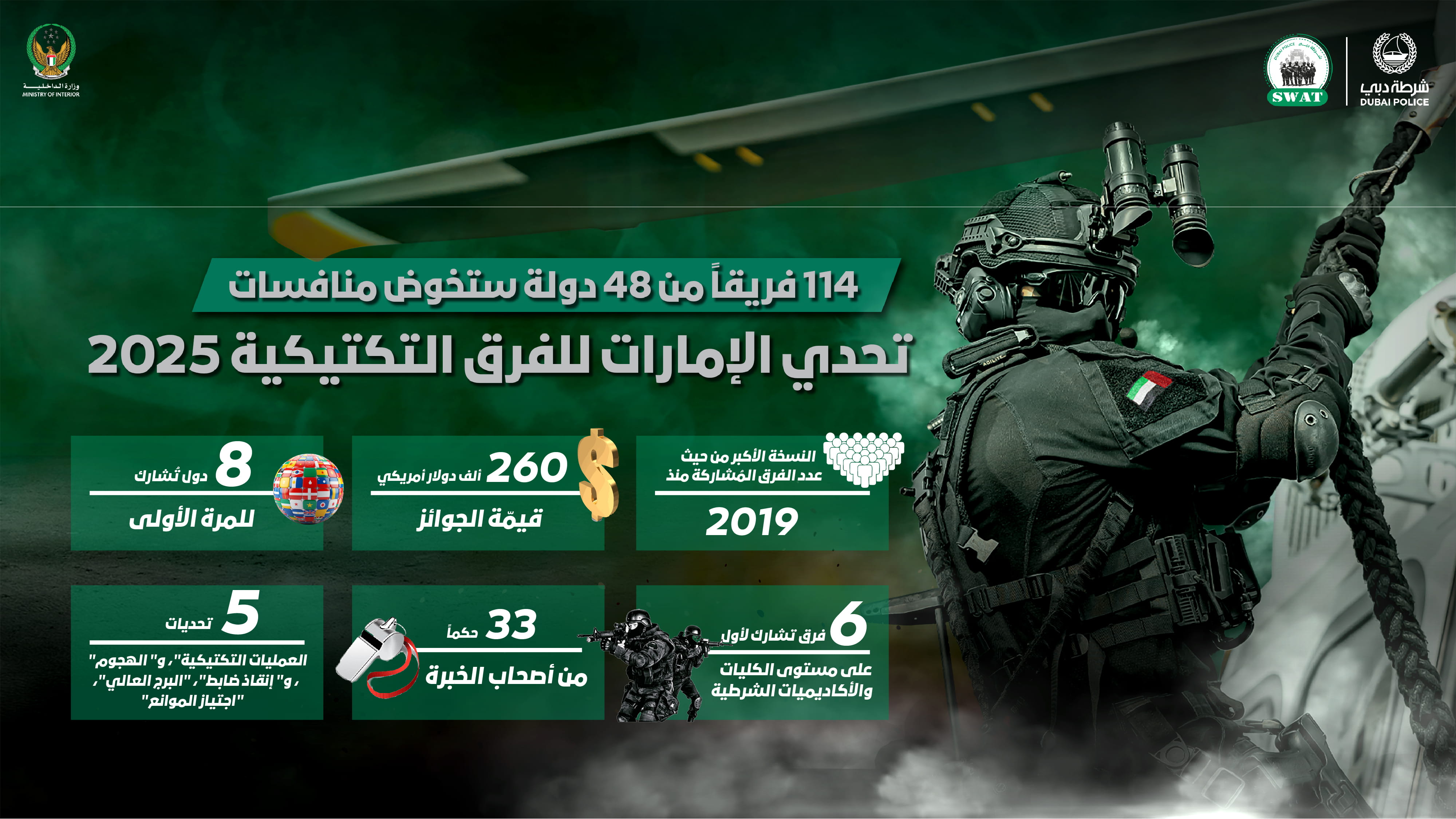 “The UAE SWAT Challenge 2025 has become the largest event of its kind, drawing tactical units from Asia, Europe, Africa, and the Americas,” said Major General Al Ghaithi. “Its growing global reputation reflects Dubai’s excellence in hosting world-class events.”
