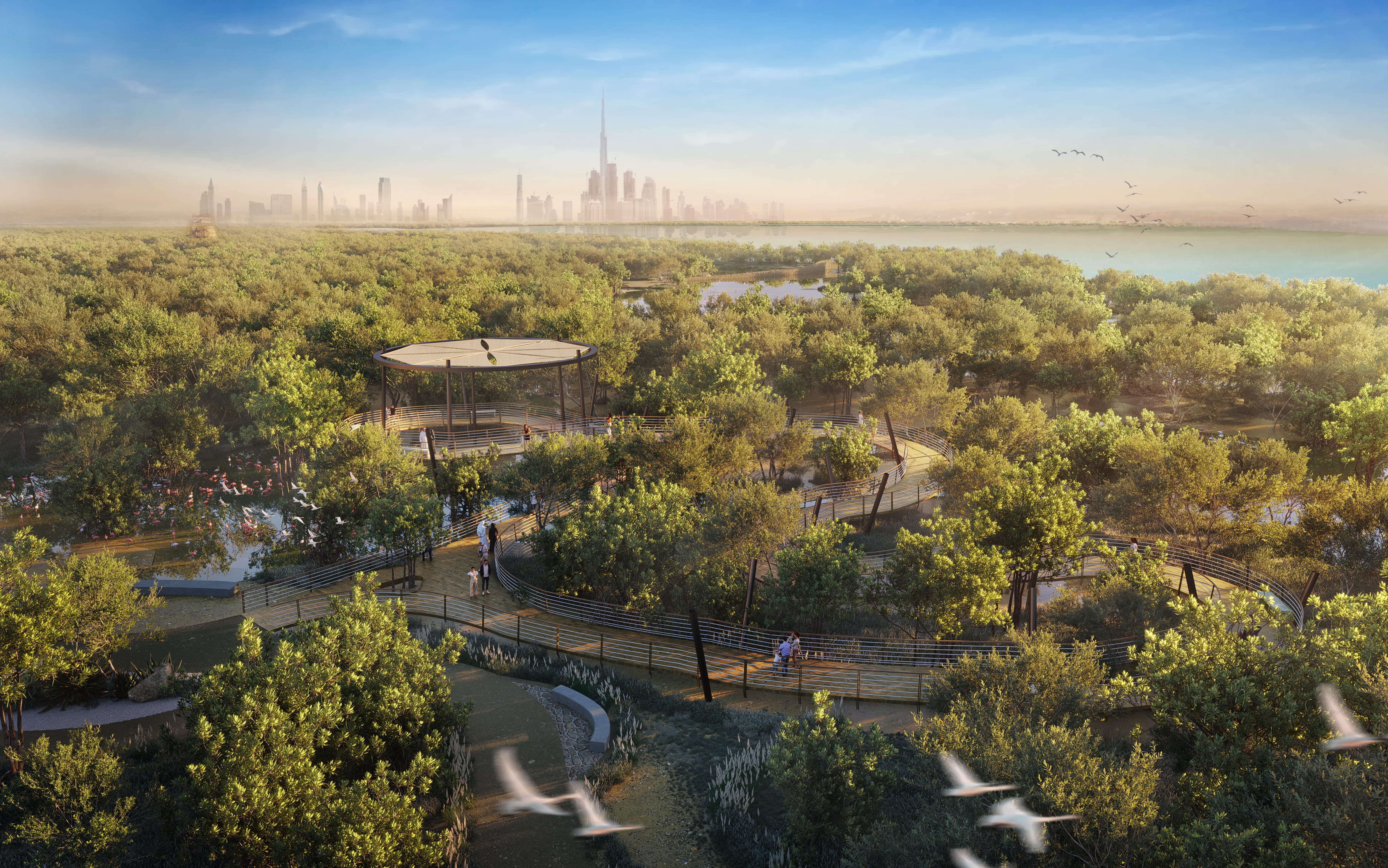 Dubai Municipality seeks to rehabilitate and improve mangrove habitats by planting new mangroves and increasing mangrove coverage by 60%, from 40 to 65 hectares. This will include the provision of new irrigation channels, rehabilitation of mangrove forests and creating new habitats such as the mangrove lake, North Edge Lake and reed ponds. A Green Spine will also be developed, and post-rehabilitation monitoring will be conducted regularly.