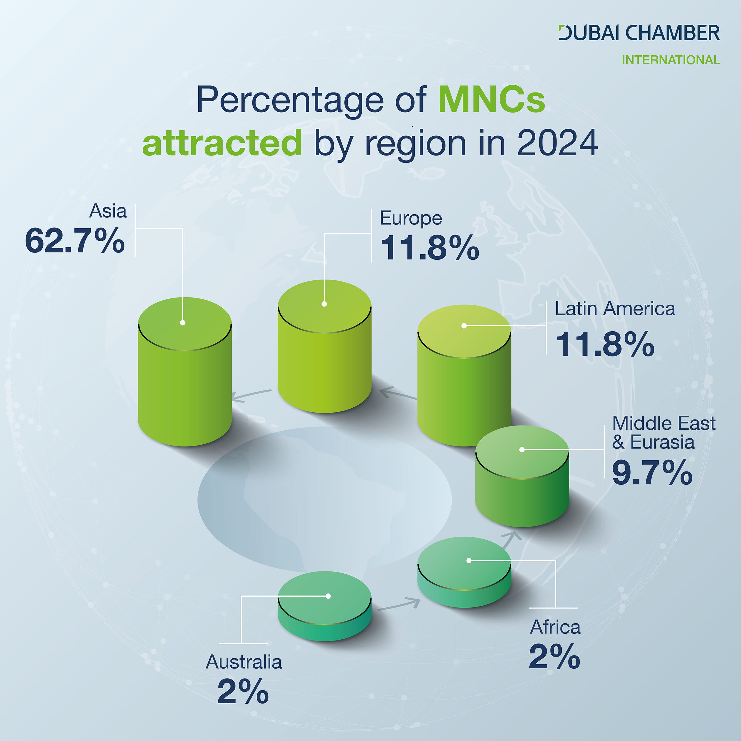 Dubai International Chamber, one of the three chambers operating under Dubai Chambers, has revealed that 62.7% of the multinational companies (MNCs) it attracted to Dubai in 2024 originated from Asia, underlining Dubai’s growing status as a key investment hub for international corporations.