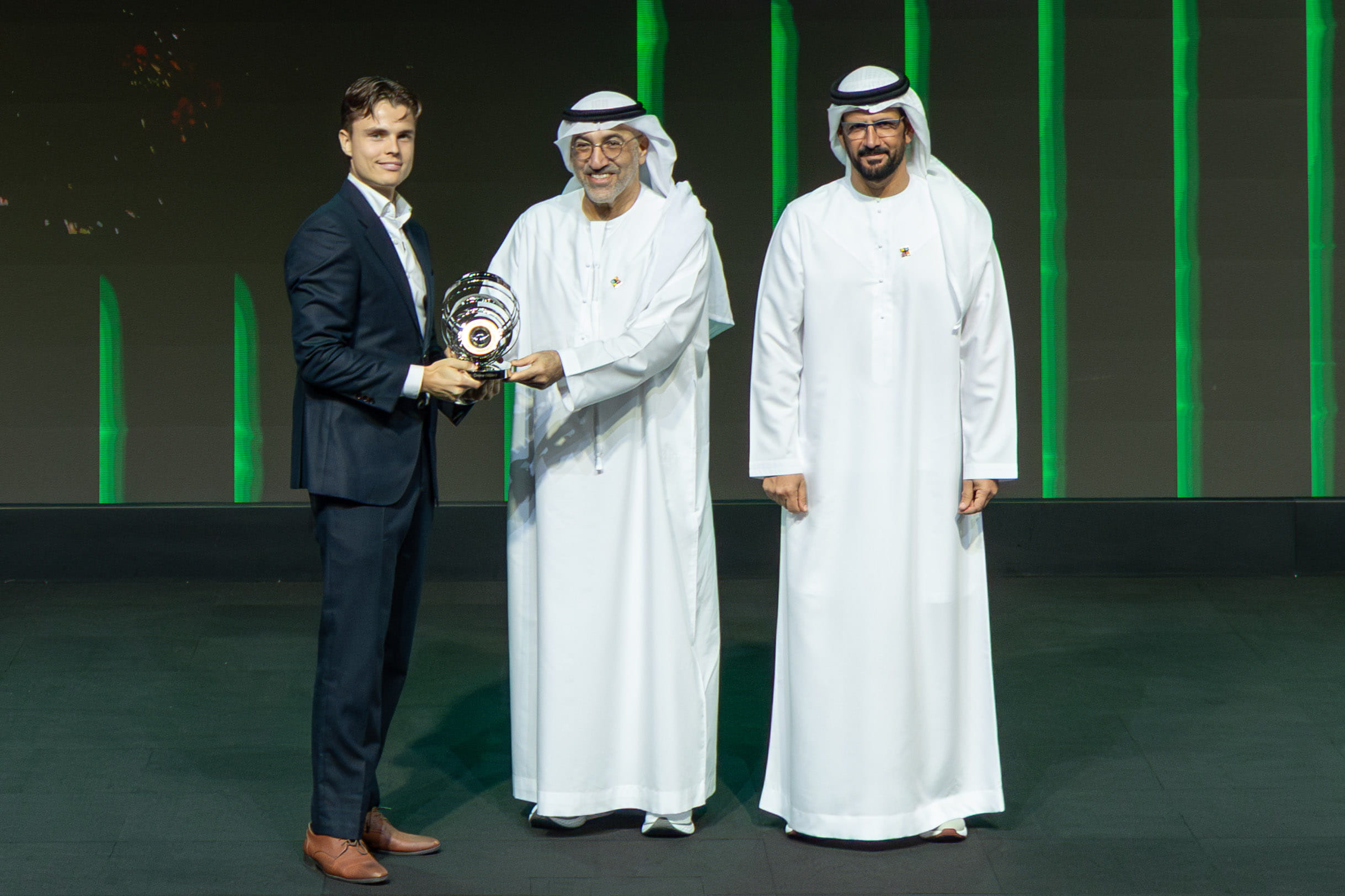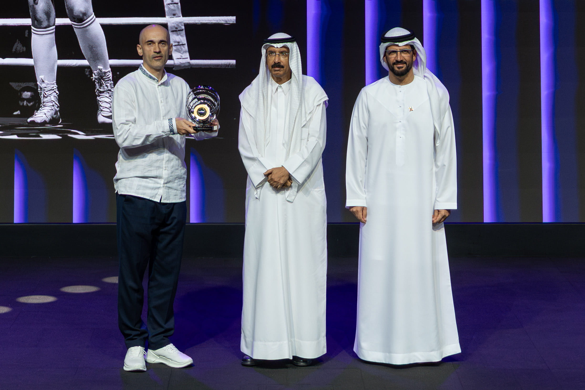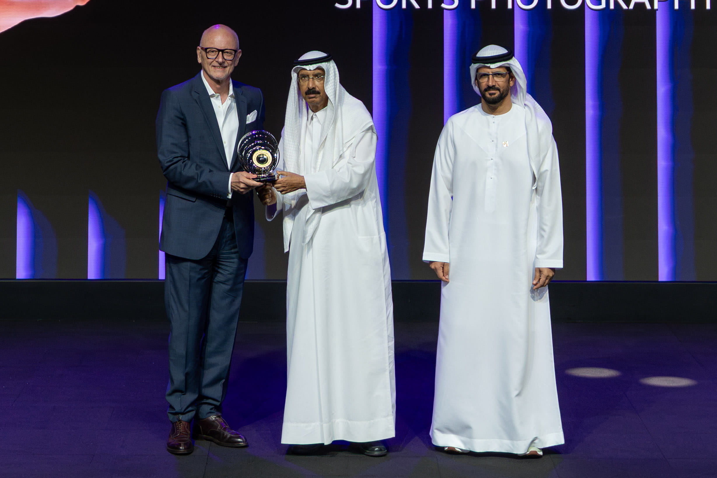 His Excellency Dr. Thani bin Ahmed Al Zeyoudi, UAE Minister of Foreign Trade, presented the Sports Photography awards. First place went to Vladimir Tadić from Bosnia and Herzegovina, followed by German photographer Laci Perényi in second place, and Japanese photographer Masatoshi Ujihara in third place.