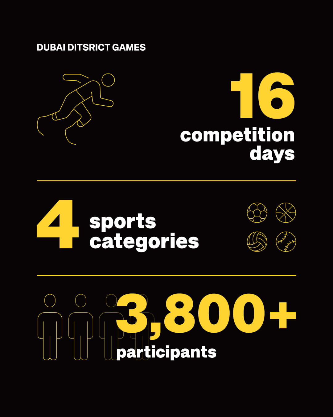 The ‘Dubai District Games’ will be held from 4-19 December across several locations, with the finals scheduled for December 17-19, 2025, at a central venue that is yet to be announced.