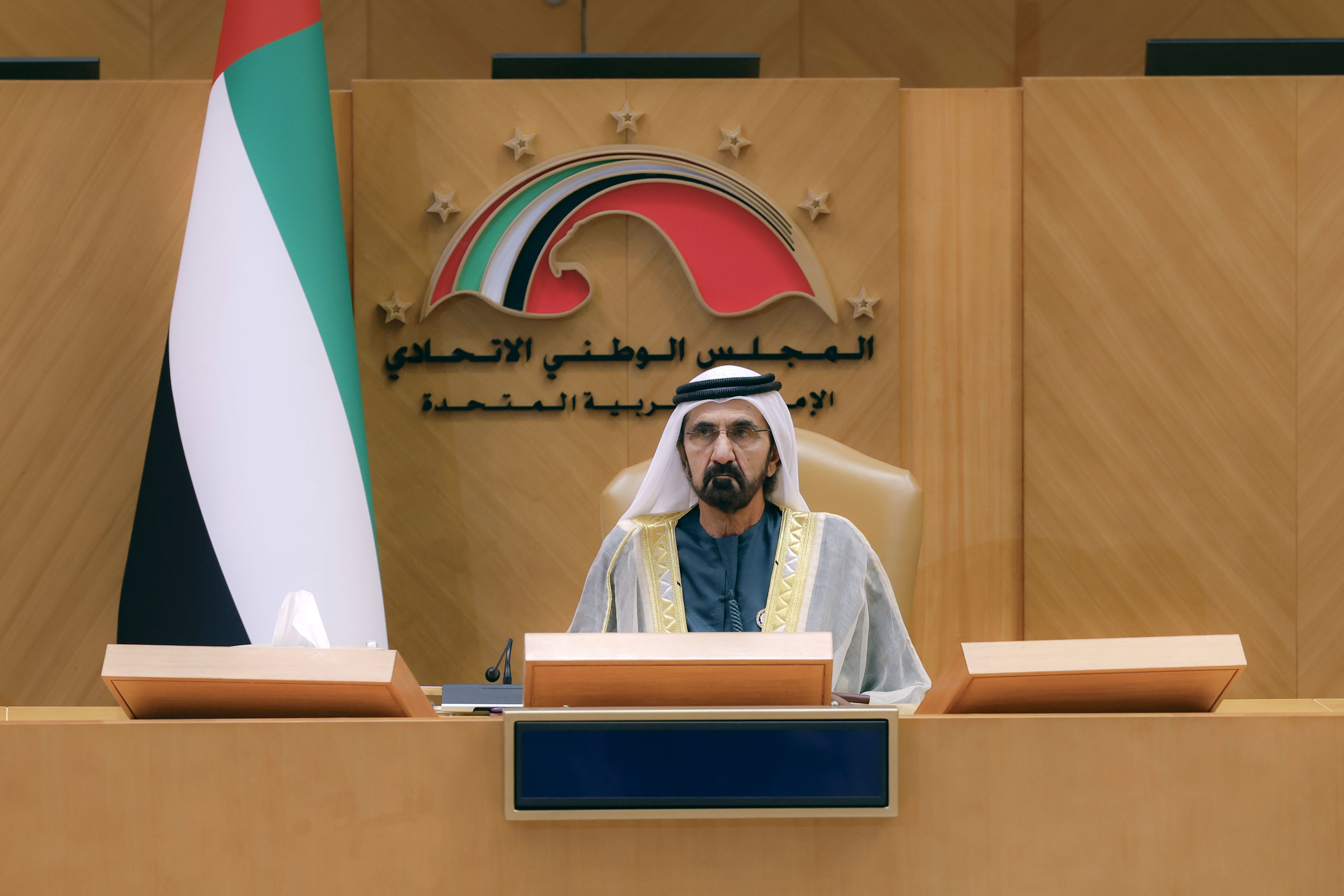 On behalf of His Highness Sheikh Mohamed bin Zayed Al Nahyan, President of the UAE, His Highness Sheikh Mohammed bin Rashid Al Maktoum, Vice President and Prime Minister of the UAE and Ruler of Dubai, opened today, the third ordinary session of the 18th legislative chapter of the Federal National Council. His Highness Sheikh Mansour bin Zayed Al Nahyan, Vice President, Deputy Prime Minister, and Chairman of the Presidential Court, also attended the opening ceremony.