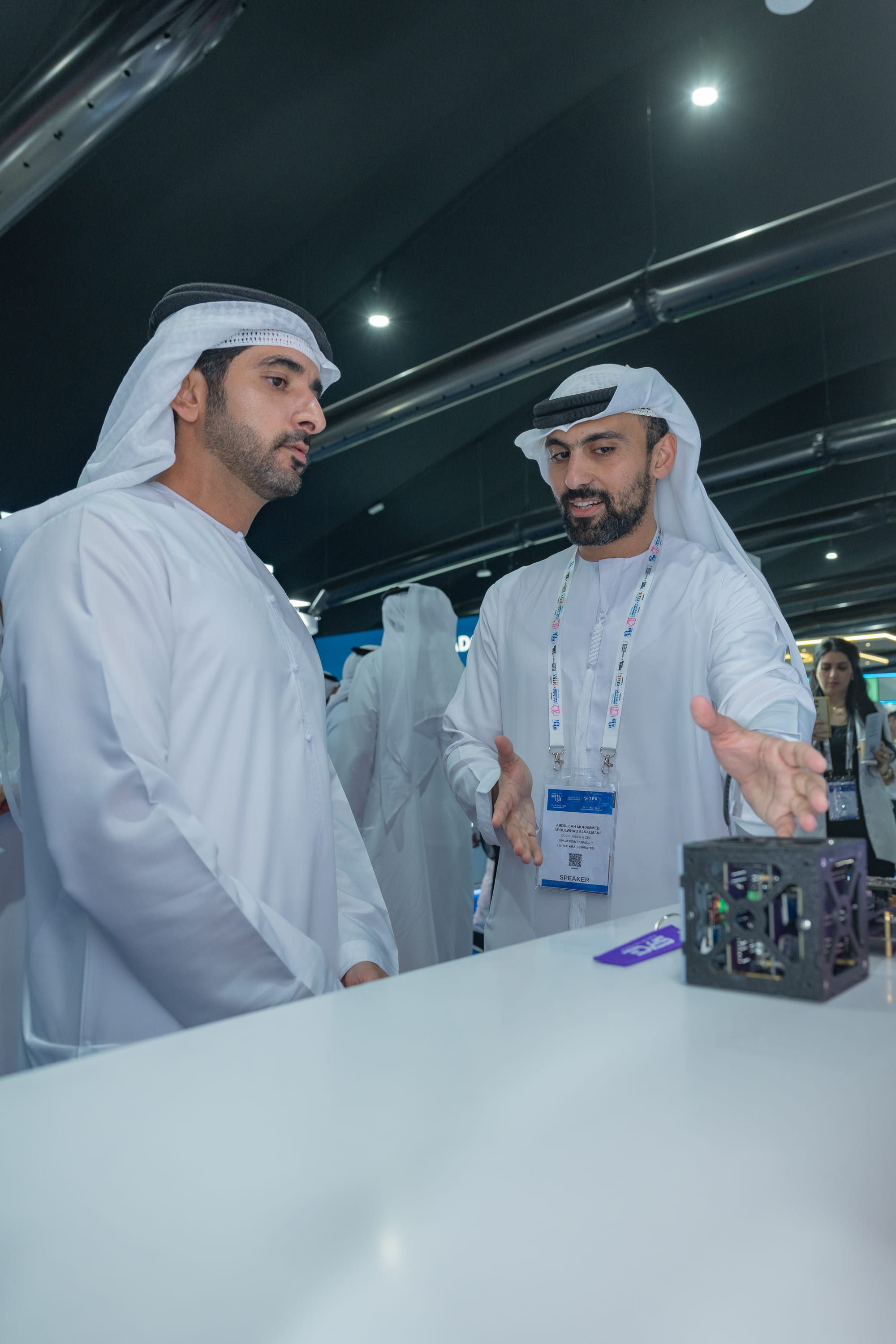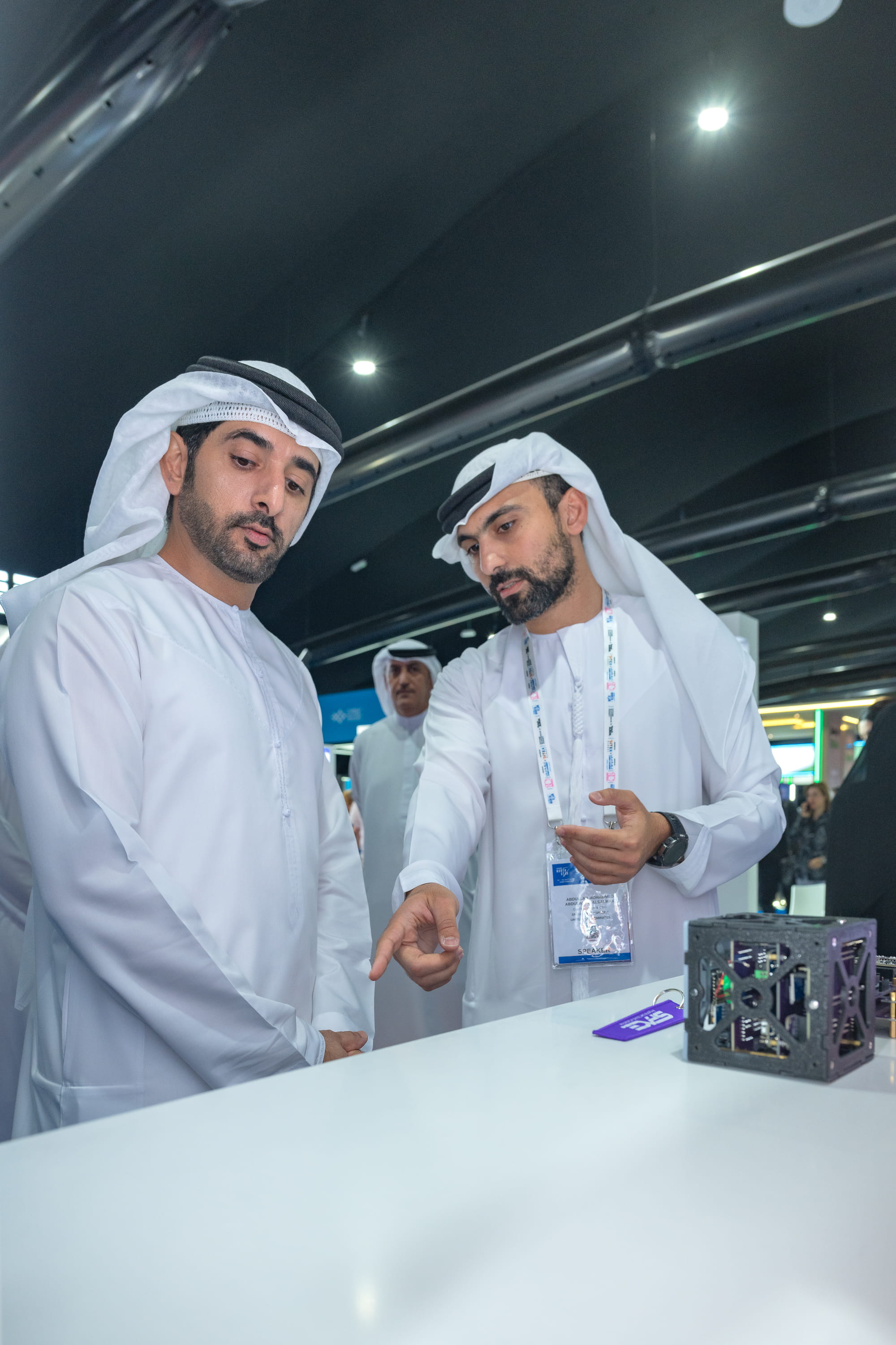 His Highness was also briefed on the work of SpacePoint, an Emirati company specialising in space sciences and satellite technologies. He further visited Emirati startups Secure Y71 and Nabibk, which presented their latest digital solutions, and the HealthTech Pavilion featuring cutting-edge innovations in medical AI, wearable devices, and early diagnosis.