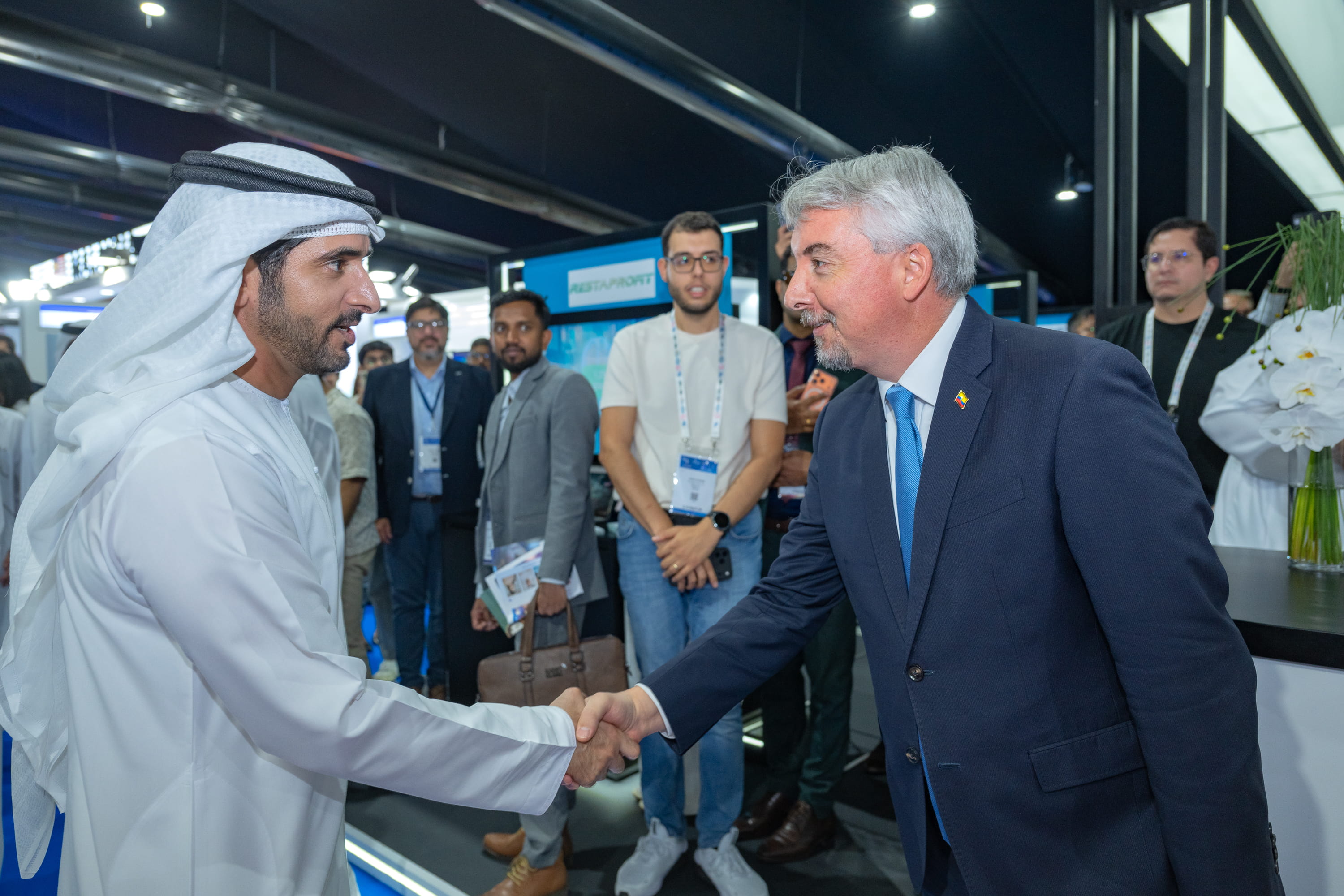 His Highness toured several pavilions at the event, where he was briefed on global participation and innovative solutions presented by leading companies in investment, technology, and future industries. These initiatives contribute to advancing digital business ecosystems and strengthening the infrastructure that enables startups to grow and expand.