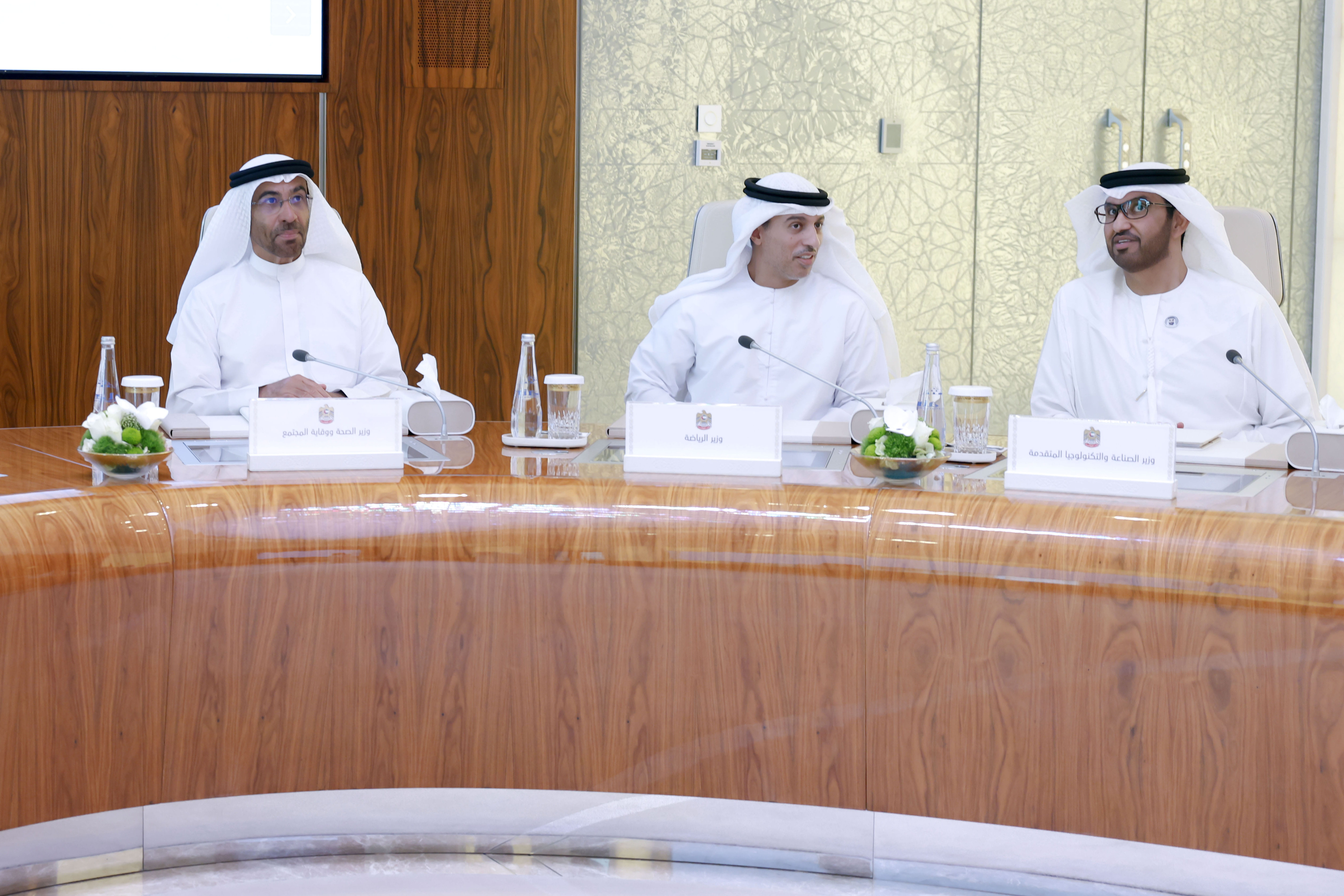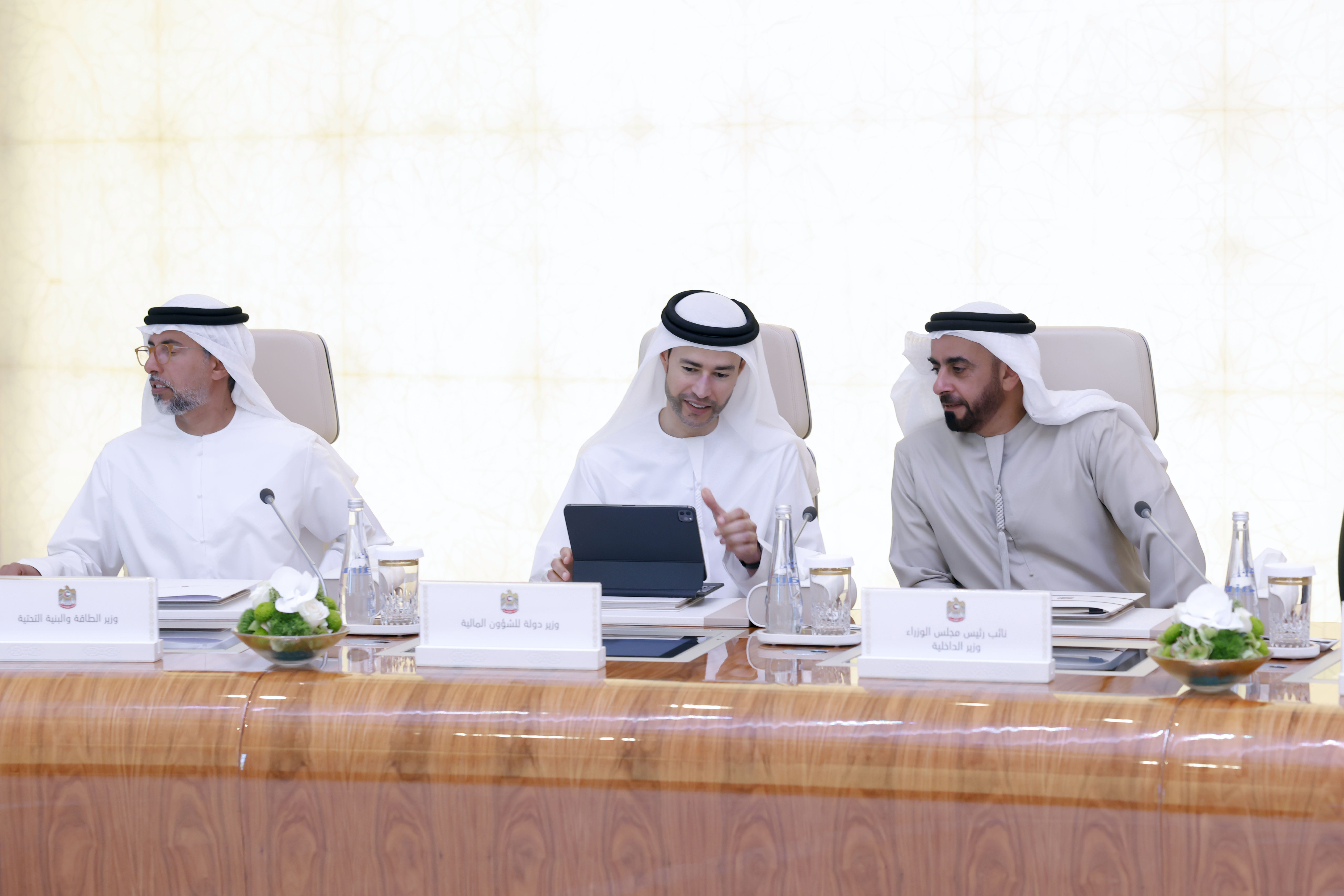 The meeting was attended by His Highness Sheikh Mansour bin Zayed Al Nahyan, Vice President, Deputy Prime Minister, and Chairman of the Presidential Court; H.H. Sheikh Hamdan bin Mohammed bin Rashid Al Maktoum, Crown Prince of Dubai, Deputy Prime Minister and Minister of Defence; H.H. Sheikh Maktoum bin Mohammed bin Rashid Al Maktoum, First Deputy Ruler of Dubai, Deputy Prime Minister, and Minister of Finance; H.H. Lt. General Sheikh Saif bin Zayed Al Nahyan, Deputy Prime Minister, and Minister of the Interior.
