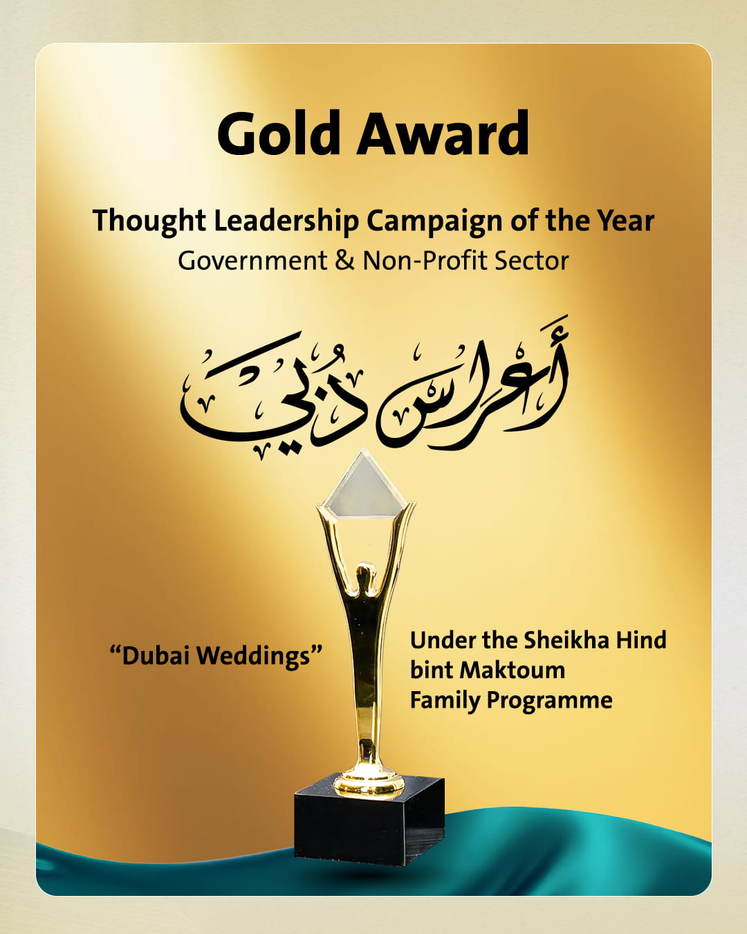 The Gold Award for ‘Thought Leadership Campaign of the Year’ honoured Sheikha Hind bint Maktoum’s 'Dubai Weddings' initiative. The programme offers sustainable assistance to young Emiratis preparing for marriage, helping to ease financial pressures and promote long-term family stability.