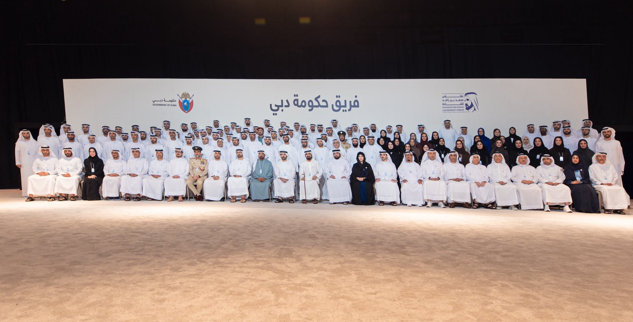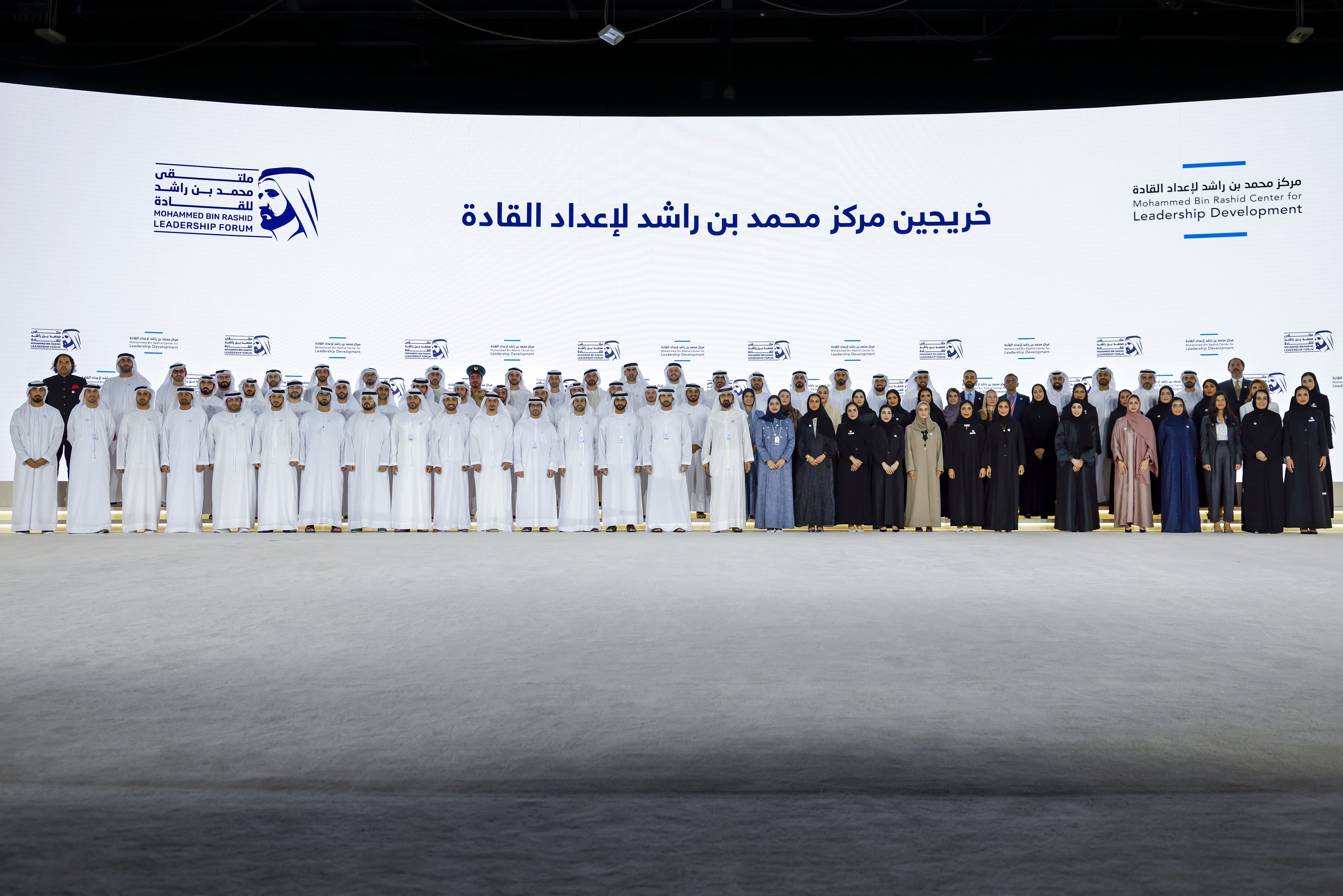 At the conclusion of the forum, Sheikh Mohammed bin Rashid Al Maktoum posed for commemorative photos with participating leaders from the public and private sectors and the graduates of the Mohammed Bin Rashid Center for Leadership Development.