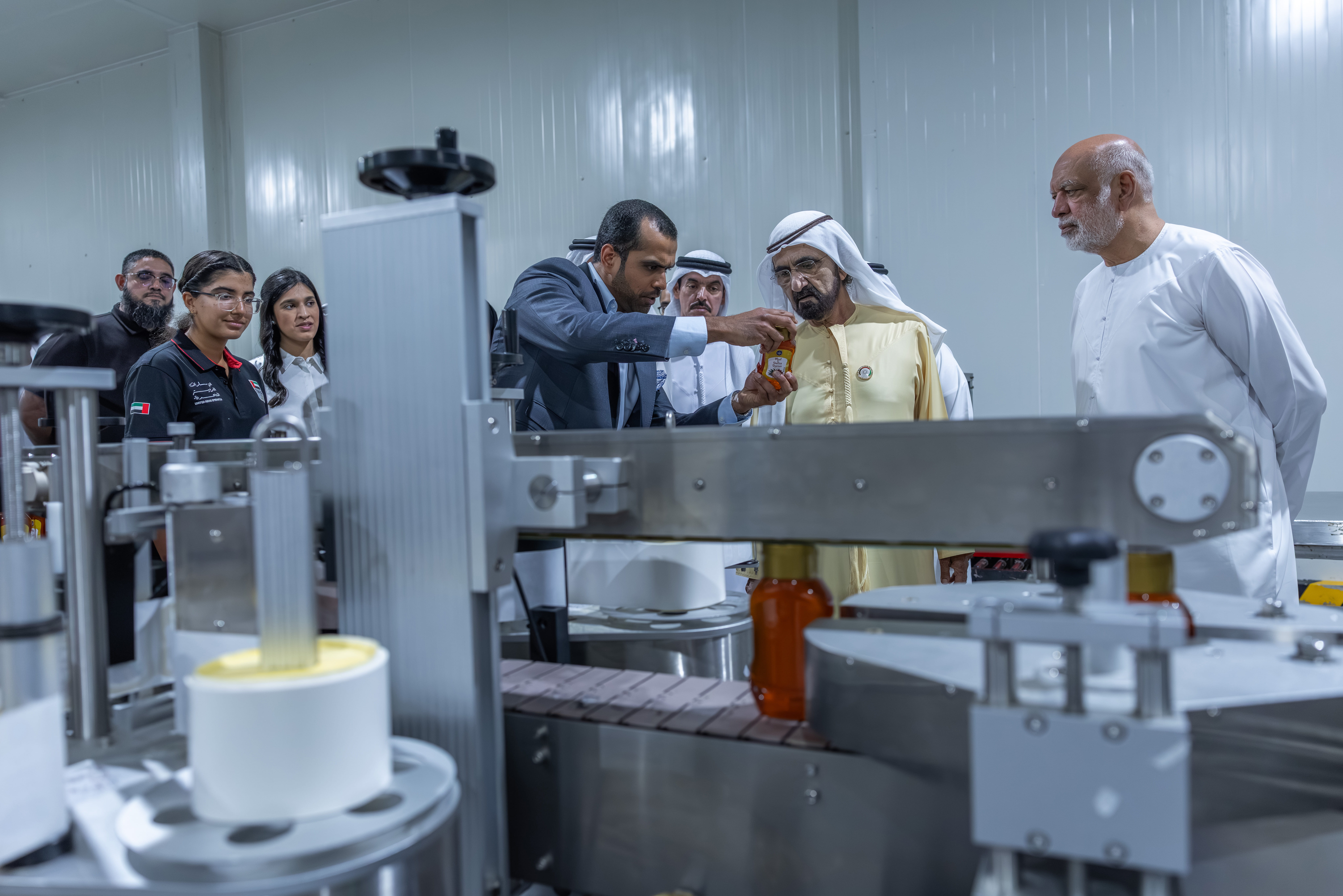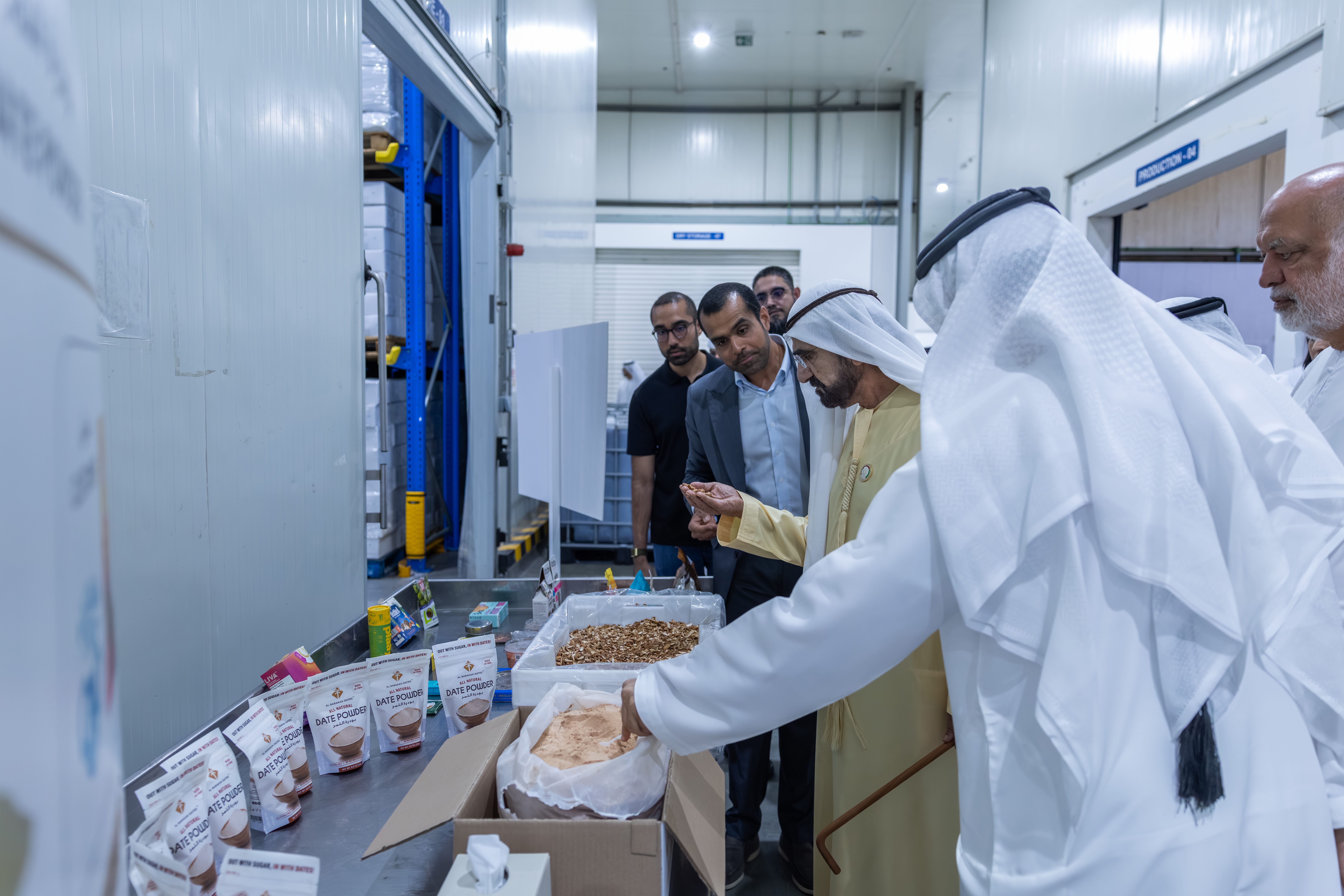 During the visit, His Highness said that the UAE continues to strengthen its position as a global hub for advanced food industries through innovation, stronger production chains, and boosting the competitiveness of national products. He noted that the dates industry is a successful example of turning the country’s agricultural heritage into a modern, high-value added sector that supports the economy and enhances food security.