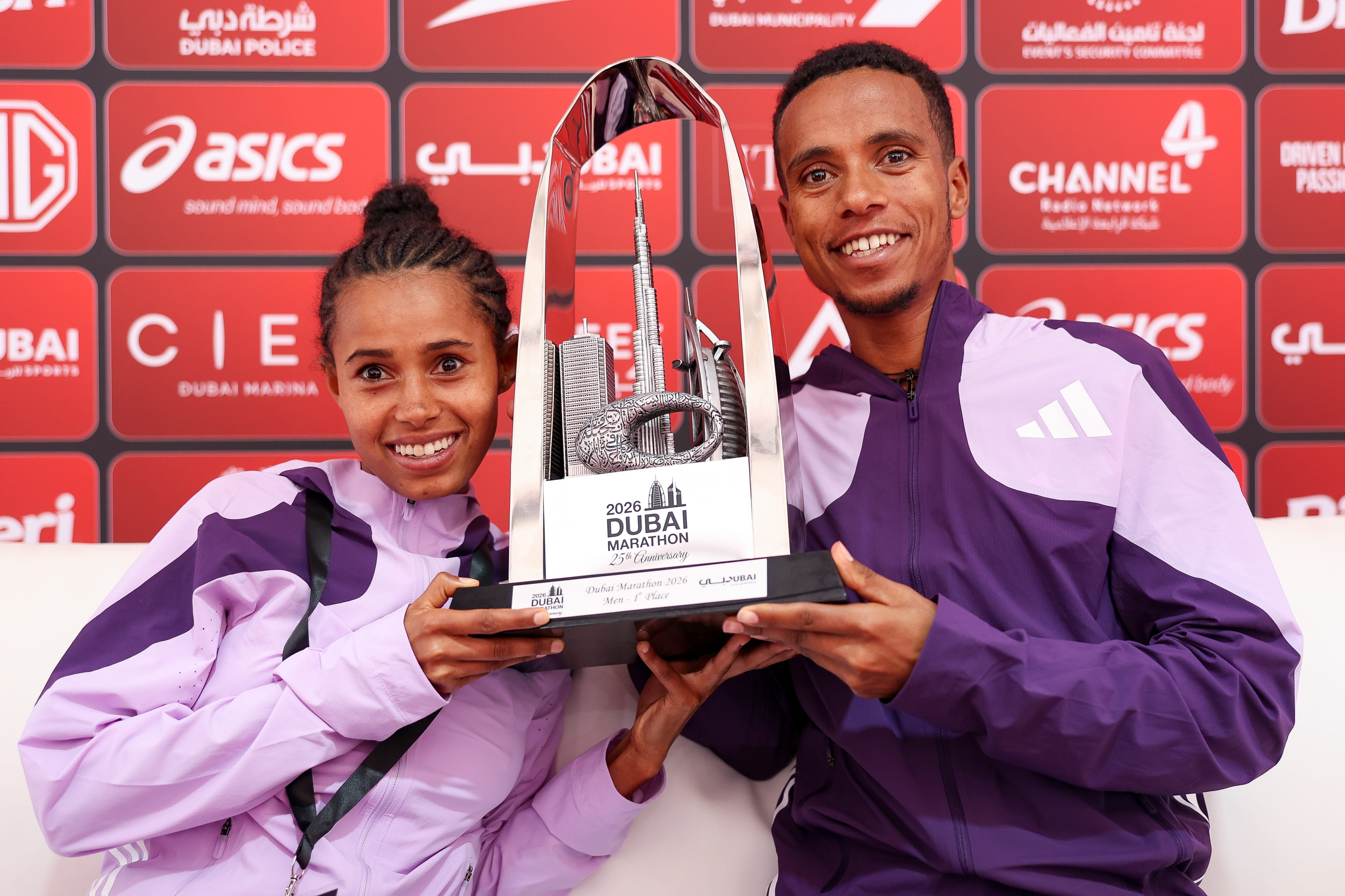 In very good weather conditions on Sunday fellow-Ethiopian Yasin Haji followed in second with 2:05:52 while third placed John Hakizimana clocked a national record for Rwanda with 2:06:04. Anchinalu Dessie was a late entry to the Dubai Marathon but finished first in a huge personal best of 2:18:31. Fellow-Ethiopians Muliye Dekebo and Fantu Worku took second and third with 2:18:43 and 2:19:08 respectively. Melak and Dessie each receive a winners’ prize of 80,000 US Dollar.