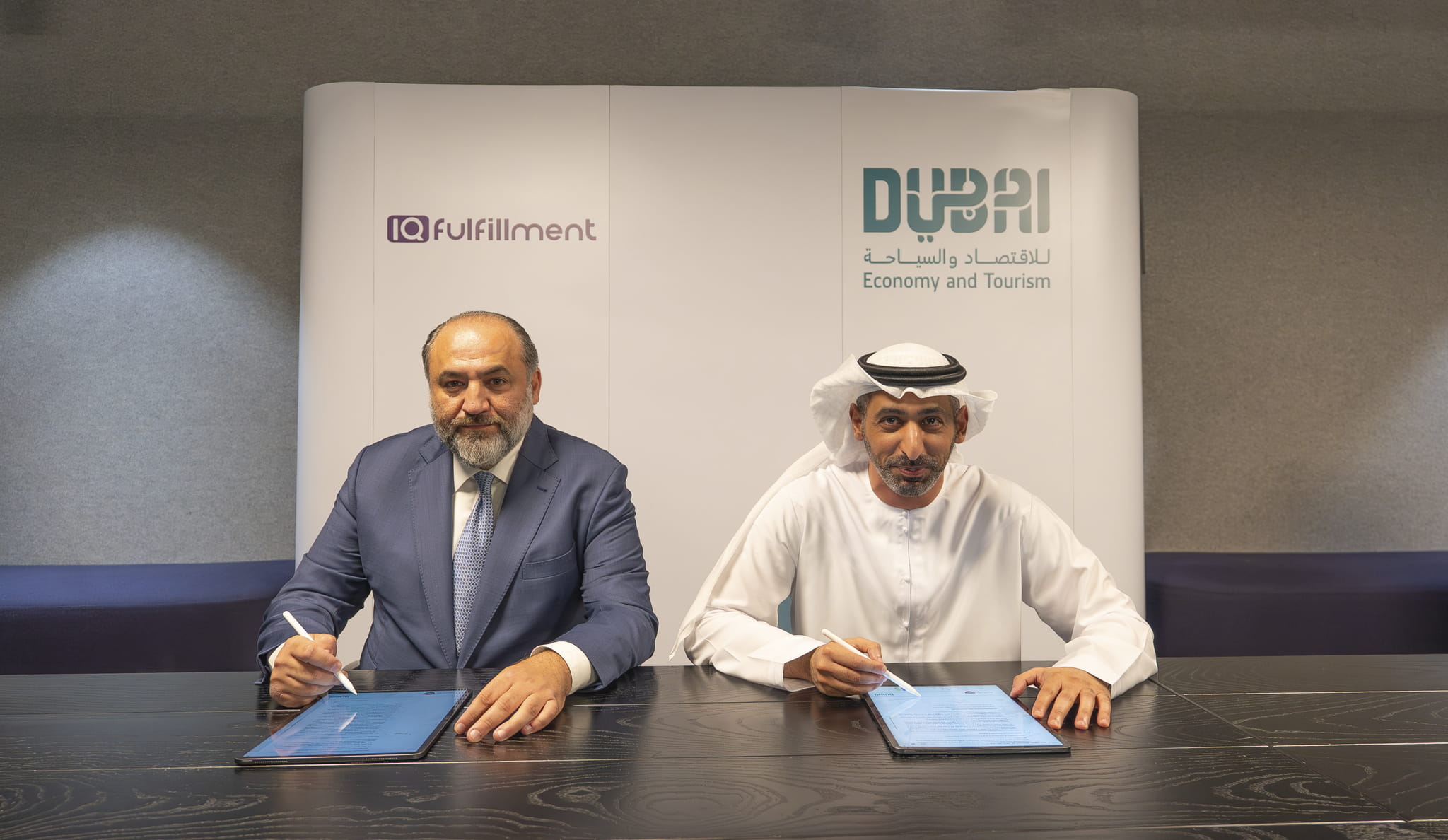 The agreement was signed by Ahmad Al Room Almheiri, Acting CEO of the Mohammed Bin Rashid Establishment for Small and Medium Enterprises Development (Dubai SME), and Fadi Amoudi, CEO of IQ Holding.
