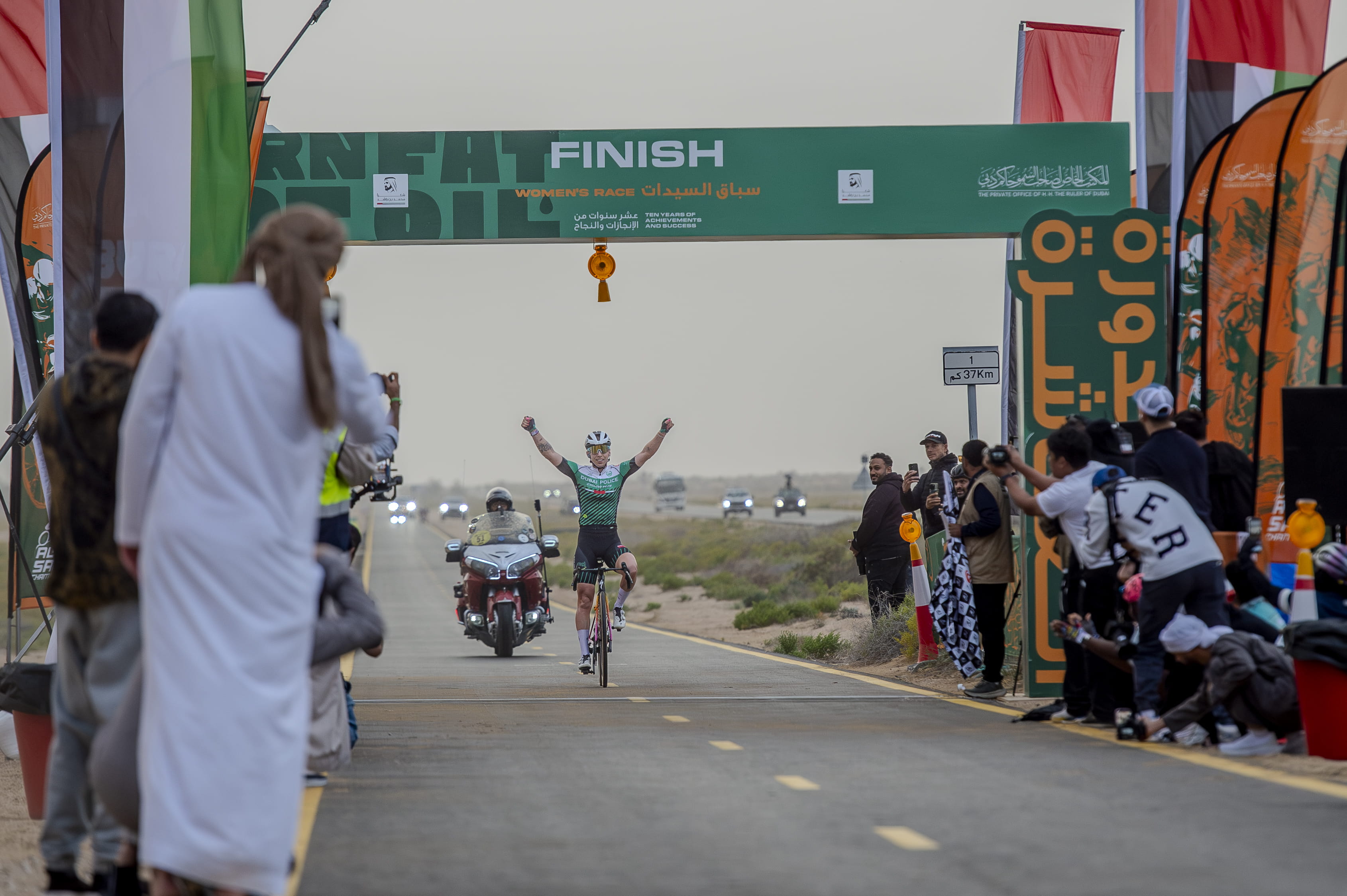Against the captivating backdrop of the Al Marmoom Desert Conservation Reserve in the Saih Al Salam area of Dubai, Dubai Police/Esaad team’s Wiebes claimed the top honours and a prize of AED100,000 after a masterful display of skill and tactics all the way to the finish line. Dubai Police/Esaad team’s Femke Markus secured second place and a prize of AED70,000, while Dubai Residence Cycling Club A team’s Nina Kessler came in third, receiving a prize of AED50,000.