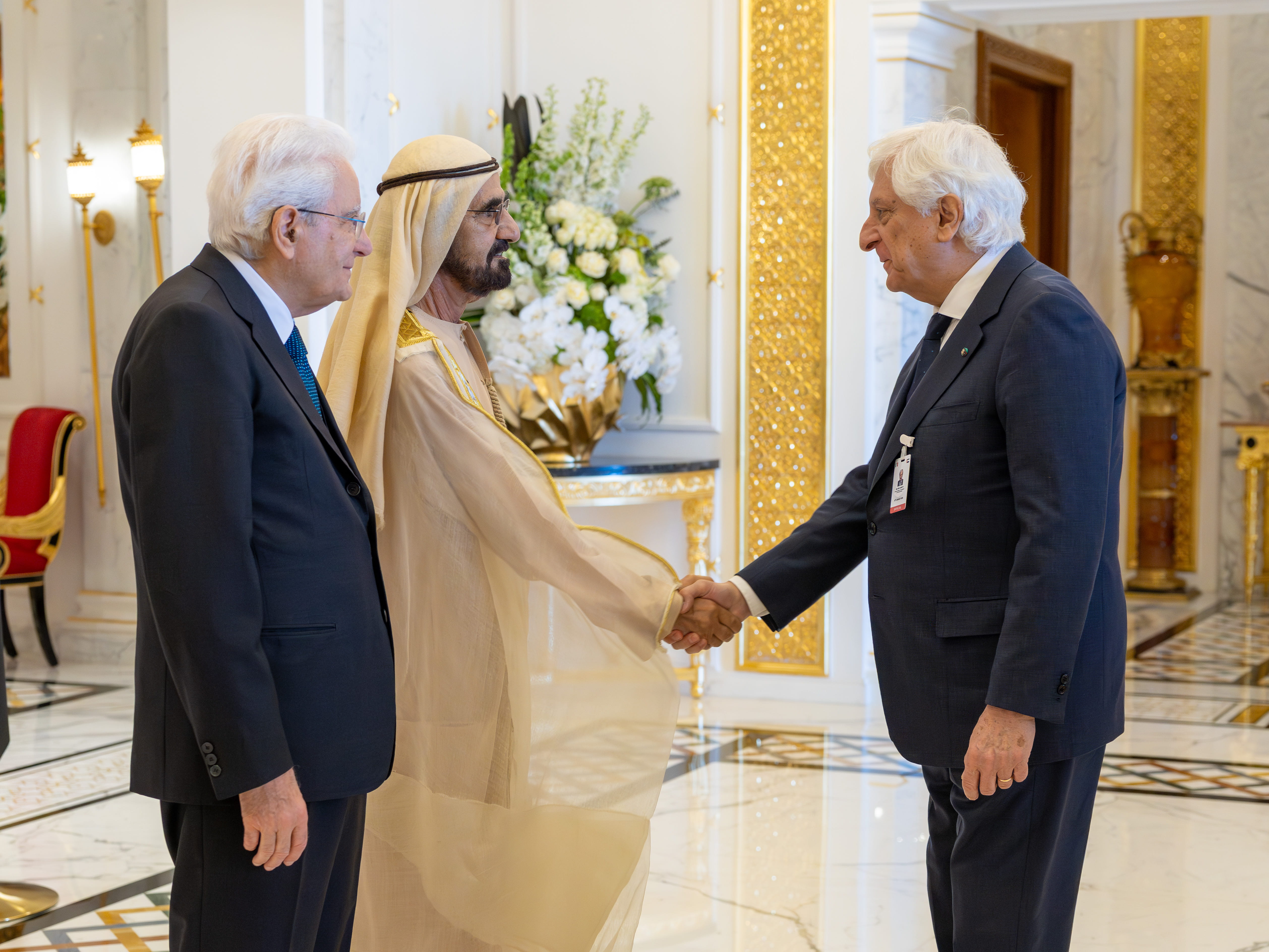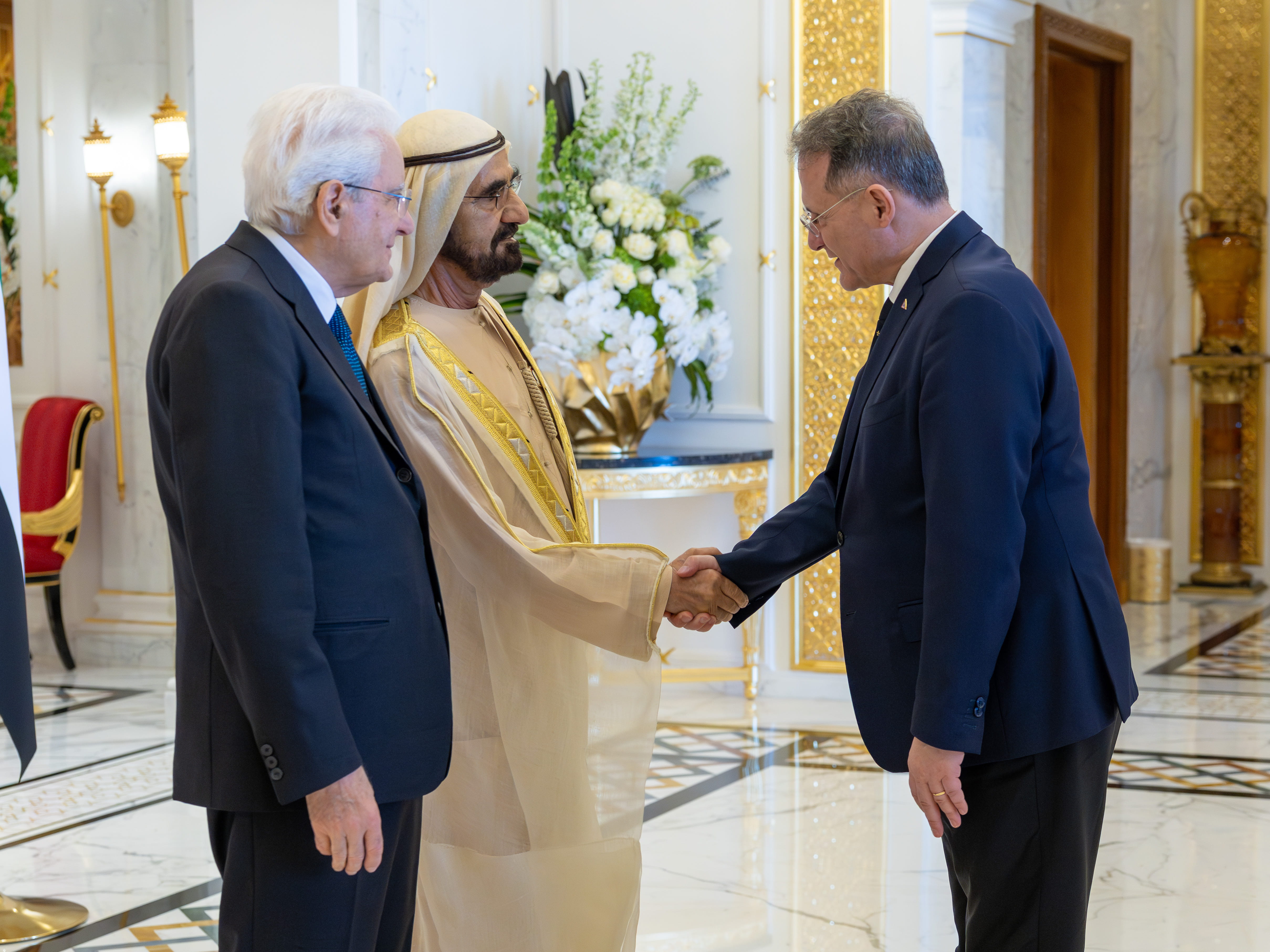The President of the Italian Republic praised the steady growth of relations between the two countries and the strength of their strategic partnership, commending the UAE’s economic achievements and reaffirming Italy’s commitment to deepening cooperation.