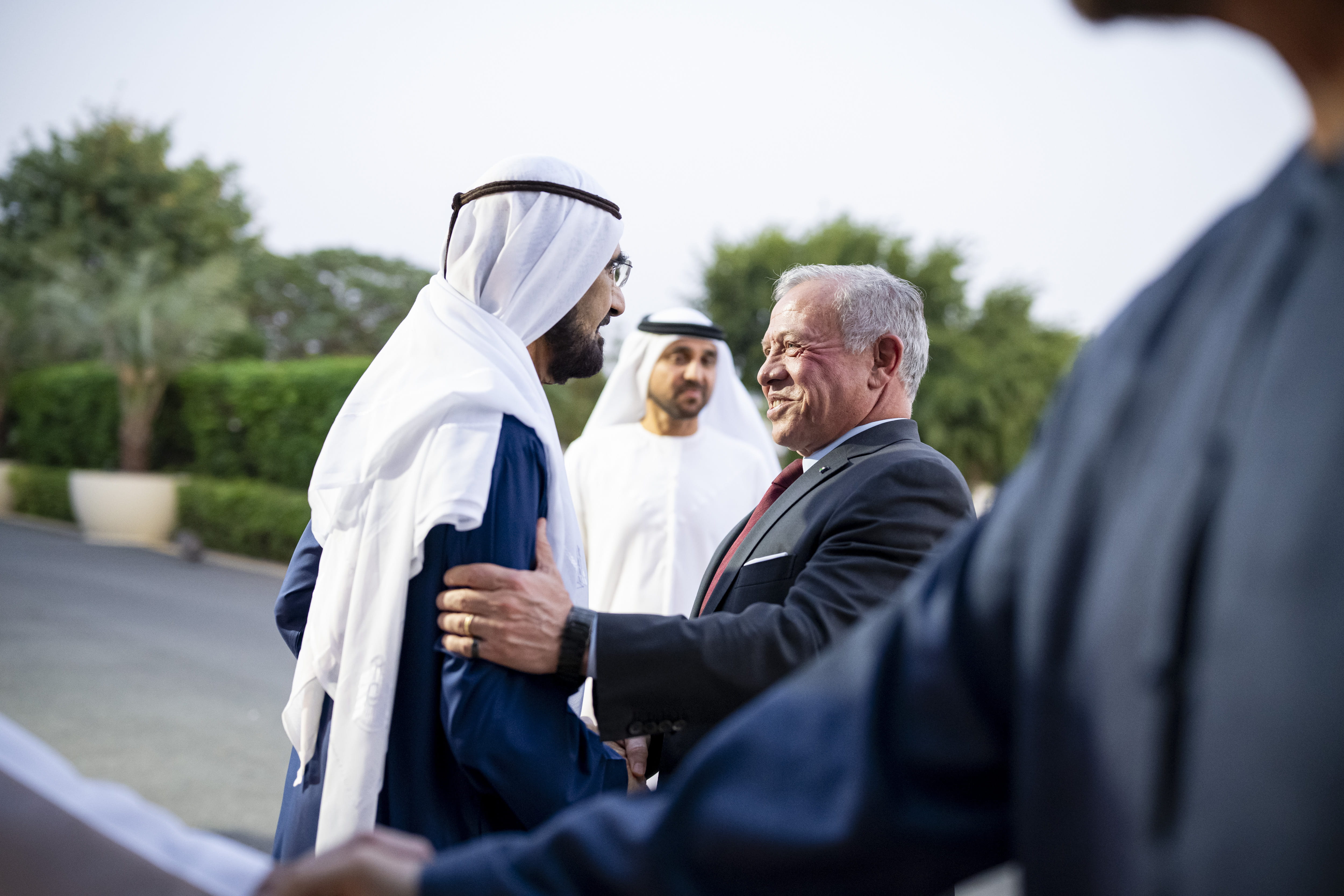 His Majesty King Abdullah II arrived earlier in the UAE and was received at Al Maktoum International Airport in Dubai by His Highness Sheikh Mansour bin Zayed Al Nahyan, Humaid Obaid Khalifa Obaid Abushibs, President of the UAE Accountability Authority, and a number of senior officials.