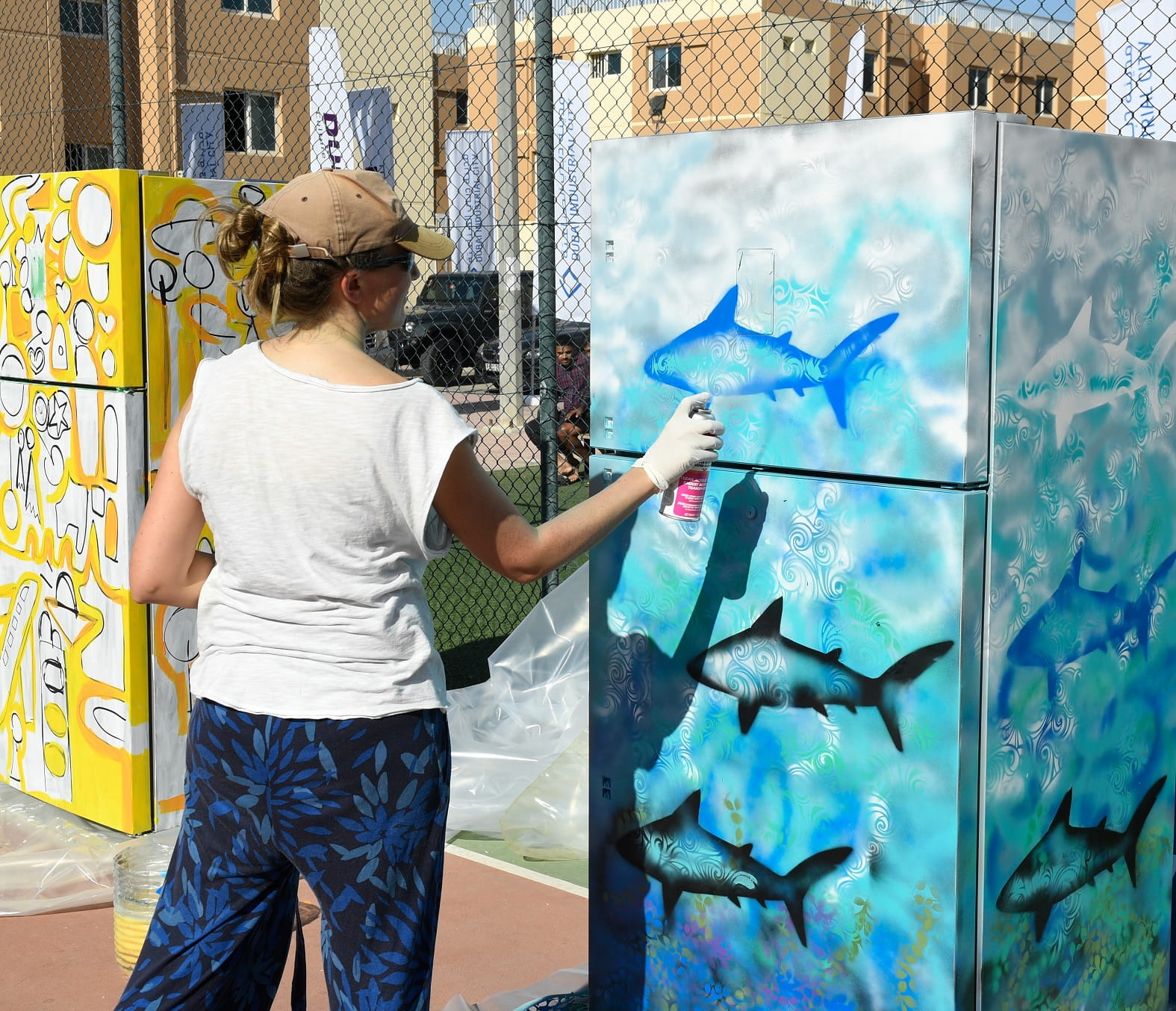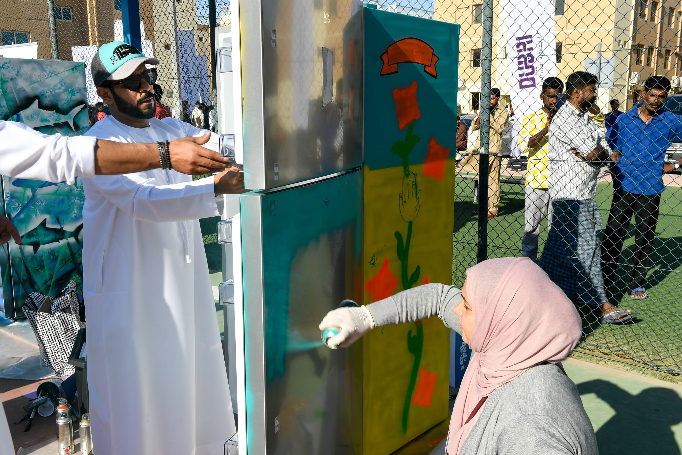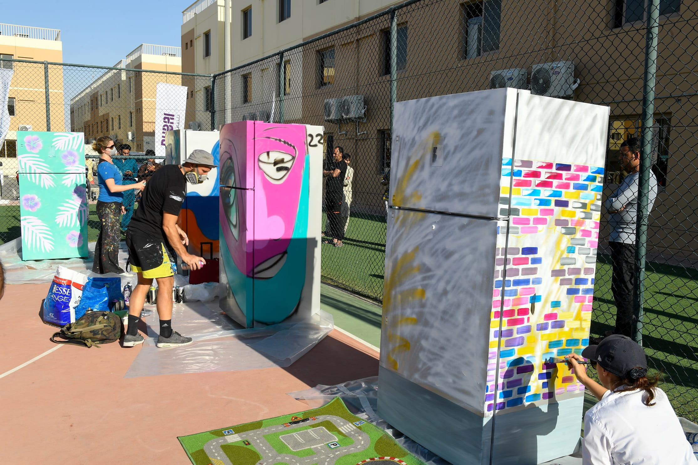 Rabab Tantawy, Artist, Art for Good said: WE celebrates with gratitude and happiness the Summer Heroes who make Dubai a beautiful global city. Artists connect today to paint labor community fridges, capturing through art the stories that illustrate humanity and bring inspiration to the Summer Heroes’ lives.