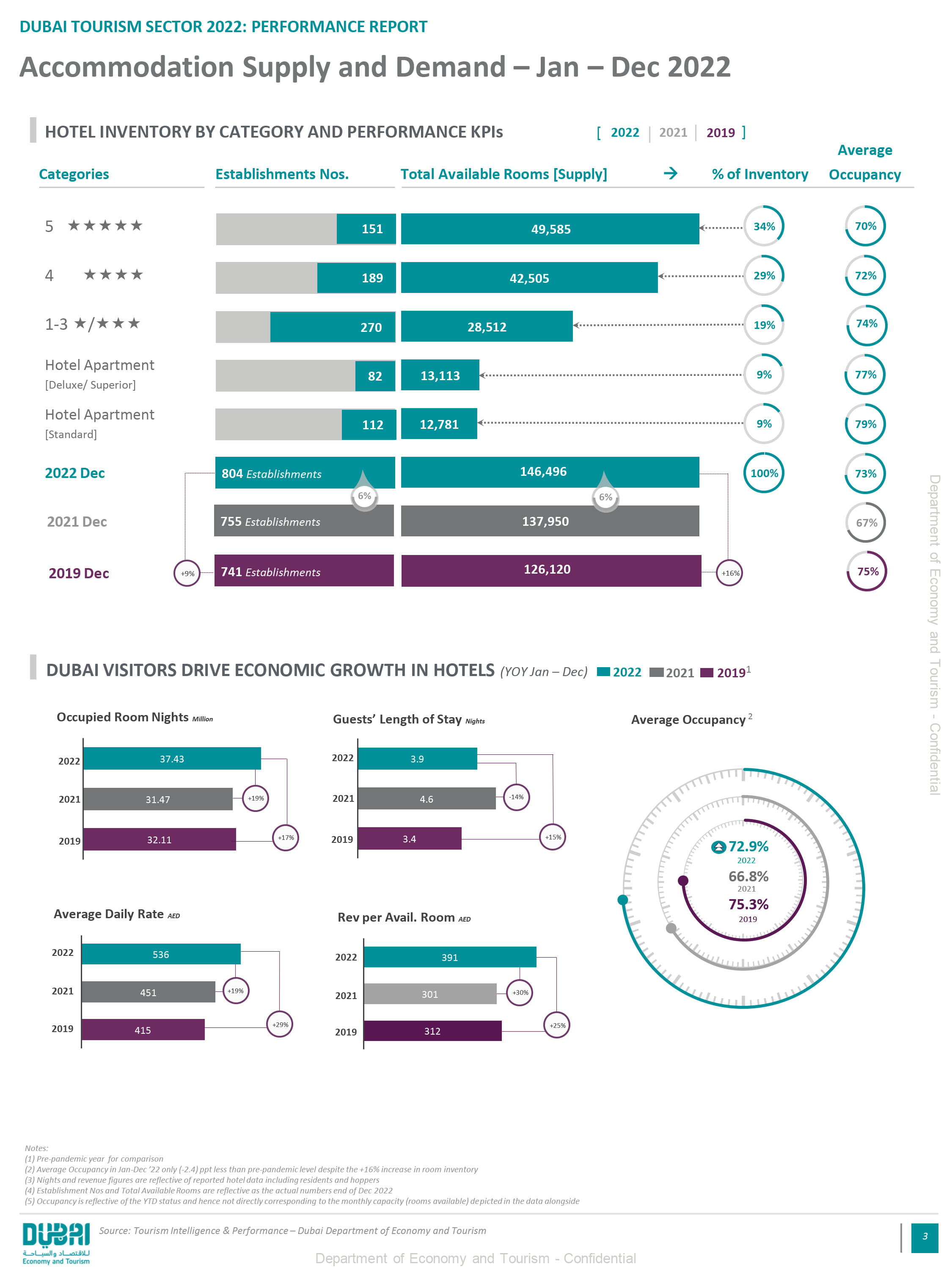 - Tourist travel to Dubai in 2022 reaches 86 per cent of pre-pandemic levels, exceeding global recovery - levels of 63 per cent and Middle East recovery levels of 83 per cent