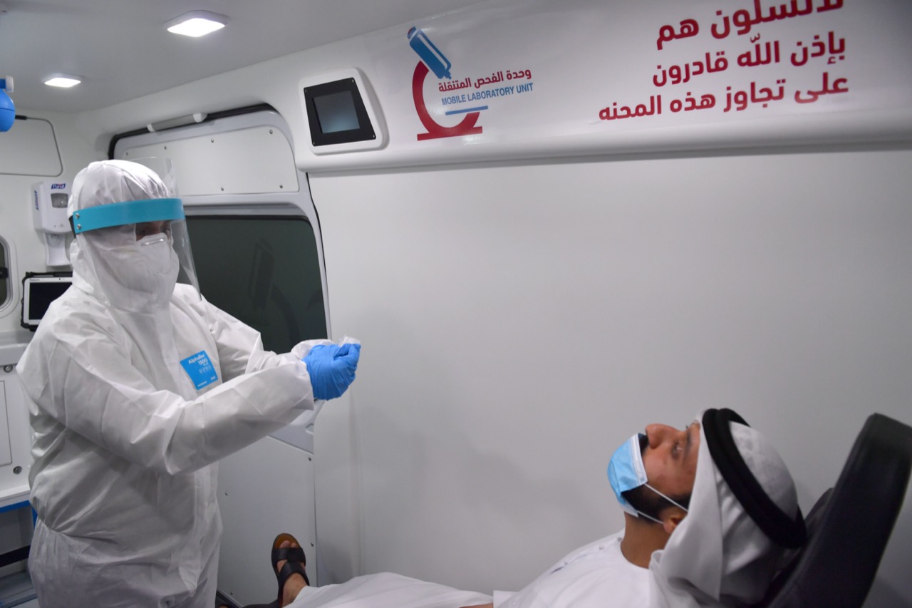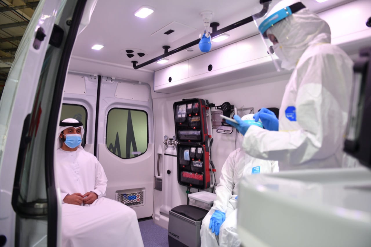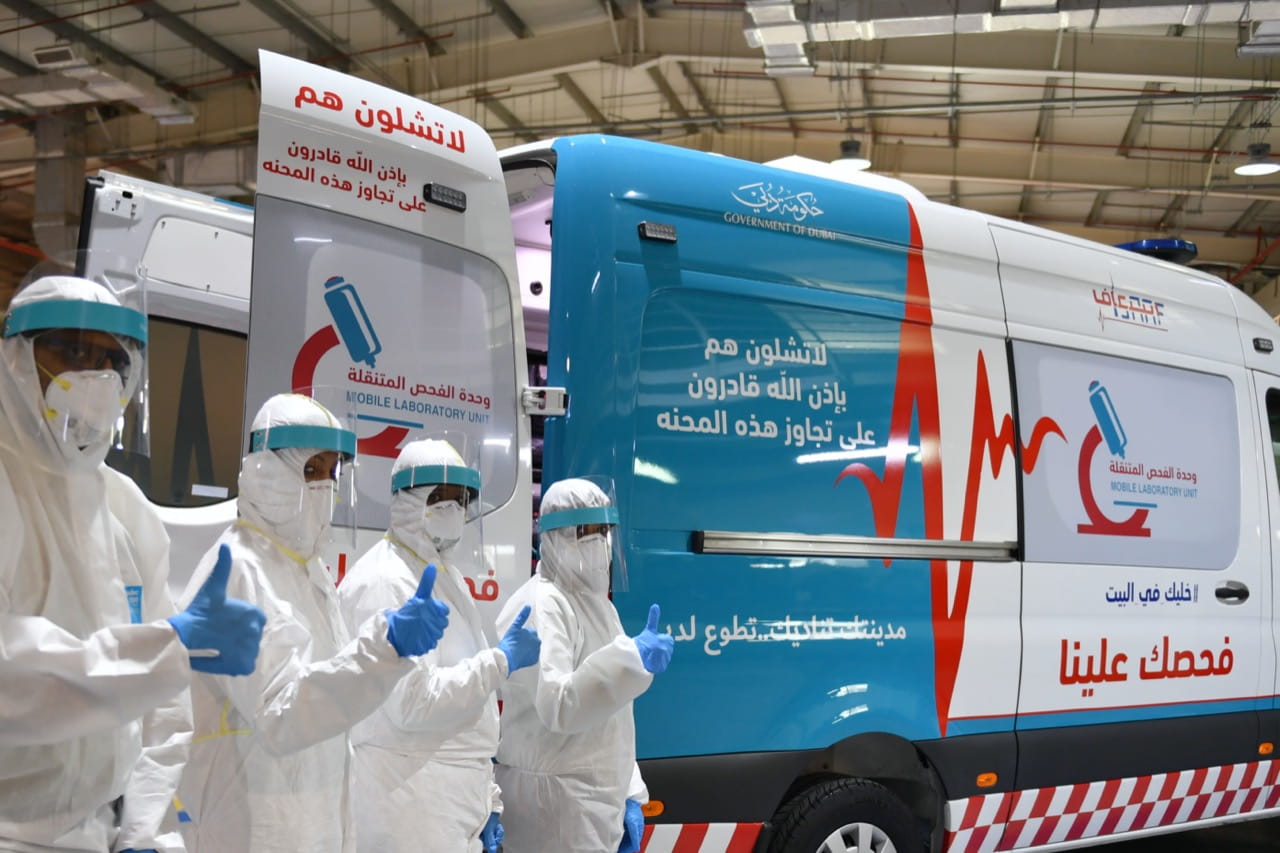 وقامت إسعاف دبي بتجهيز مركبة إسعاف كوحدة فحص متنقلّة، وعملت بجهود ذاتية وطاقاتها الداخلية على إعادة التصميم للمركبة بالكامل من الخارج والداخل بما يتلاءم مع طبيعة احتياجات الطاقم الإسعافي لتنفيذ الفحوصات ويضمن راحة المتعامل، حيث تم تحويل كابينة الإسعاف إلى مختبر طبي متنقل تحتوي على كراسي يمكن تعديل وضعيتها بما يتناسب مع إجراءات الفحص. كما جُهزت بحقائب معلقة لحفظ المواد الطبية تسهّل على المسعفين التحكم في نقلها من مكان إلى آخر.
