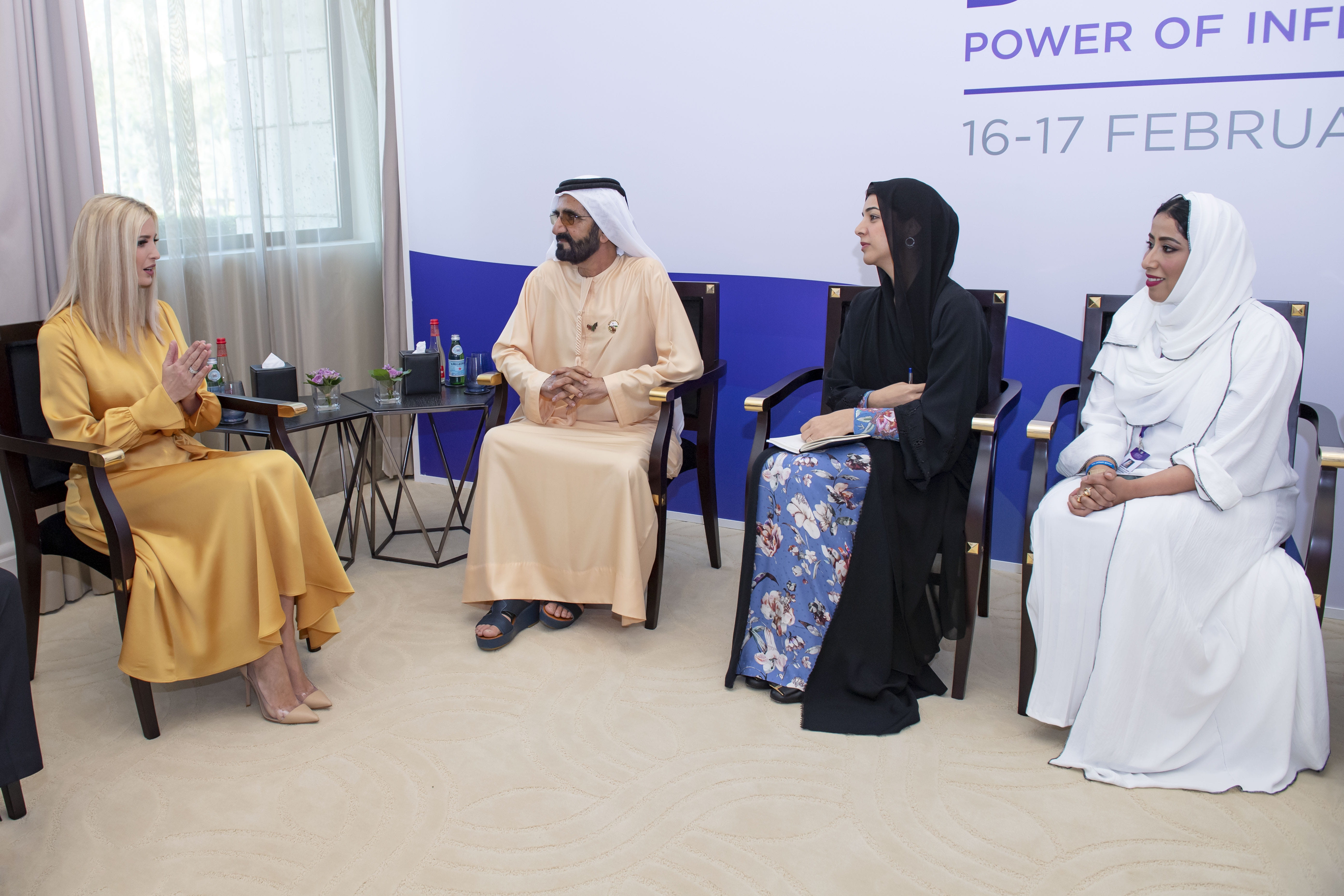 من جهتها، أعربت إيفانكا ترامب عن خالص الشكر لصاحب السمو الشيخ محمد بن راشد آل مكتوم، وإلى دولة الإمارات العربية المتحدة لتوجيه الدعوة لها للمشاركة في أعمال منتدى المرأة العالمي- دبي 2020، مؤكدة كامل تقديرها لجهود دولة الإمارات في مجال منح المرأة الفرص المتكافئة وتوسيع مساحة مشاركتها في صنع النهضة التنموية الشاملة للدولة، مثنية على القرارات المهمة التي اتخذتها الحكومة الإماراتية في هذا الصدد لاسيما في مجال التمكين الاقتصادي ودعم رائدات الأعمال وتطوير القوانين والأطر التشريعية التي من شأنها حماية حقوق المرأة بصورة عامة وتأكيد دورها المحوري في المجتمع.