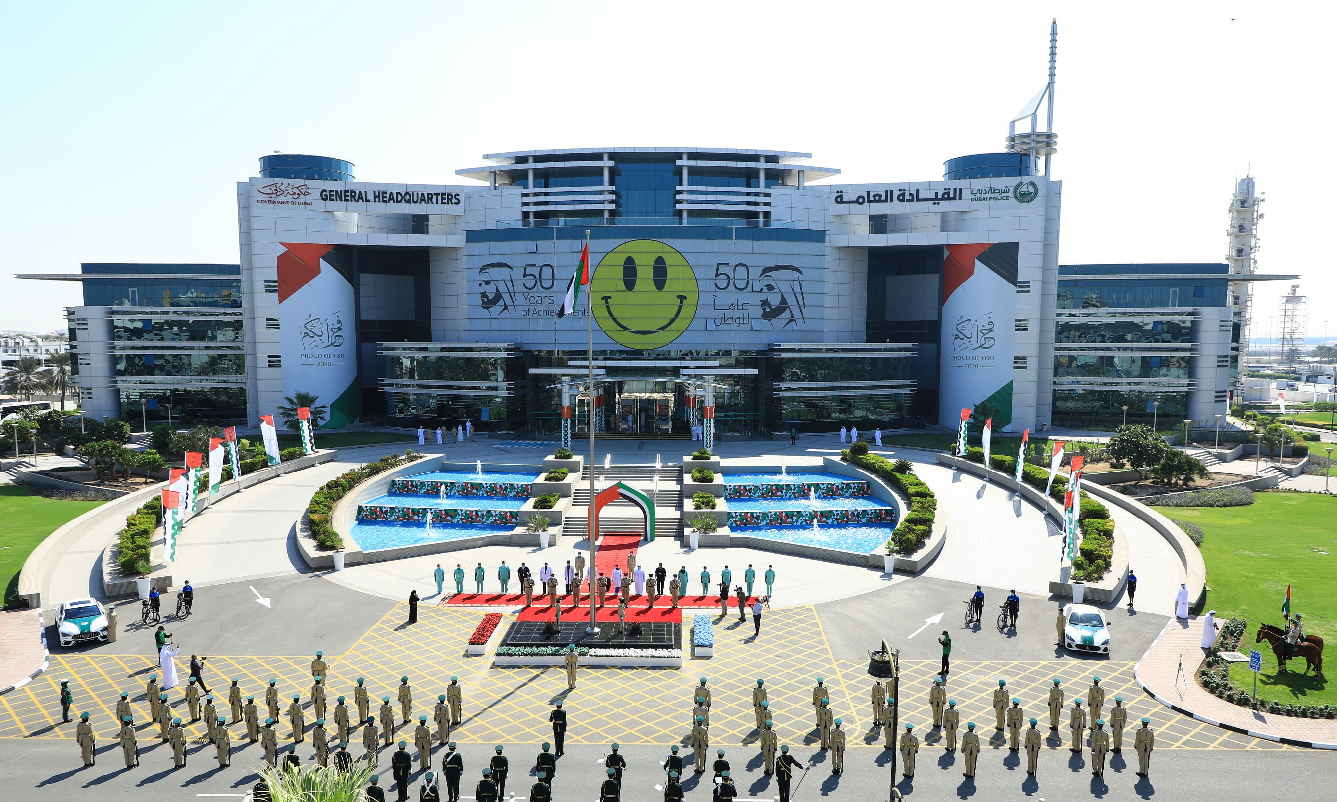 وضمن إجراءات احترازية تضمن الصحة والسلامة للمشاركين، شهدت احتفالية رفع العلم مشاركة فرقة الخيالة في شرطة دبي، والدوريات الفارهة، وفرق الدراجات الهوائية، فيما التقط سعادة الفريق عبد الله خليفة المري عقب الاحتفالية الصور التذكارية مع المشاركين من الطواقم الطبية، ومع منظمي الفعالية من إدارة العلاقات المجتمعية في الإدارة العامة لإسعاد المجتمع.