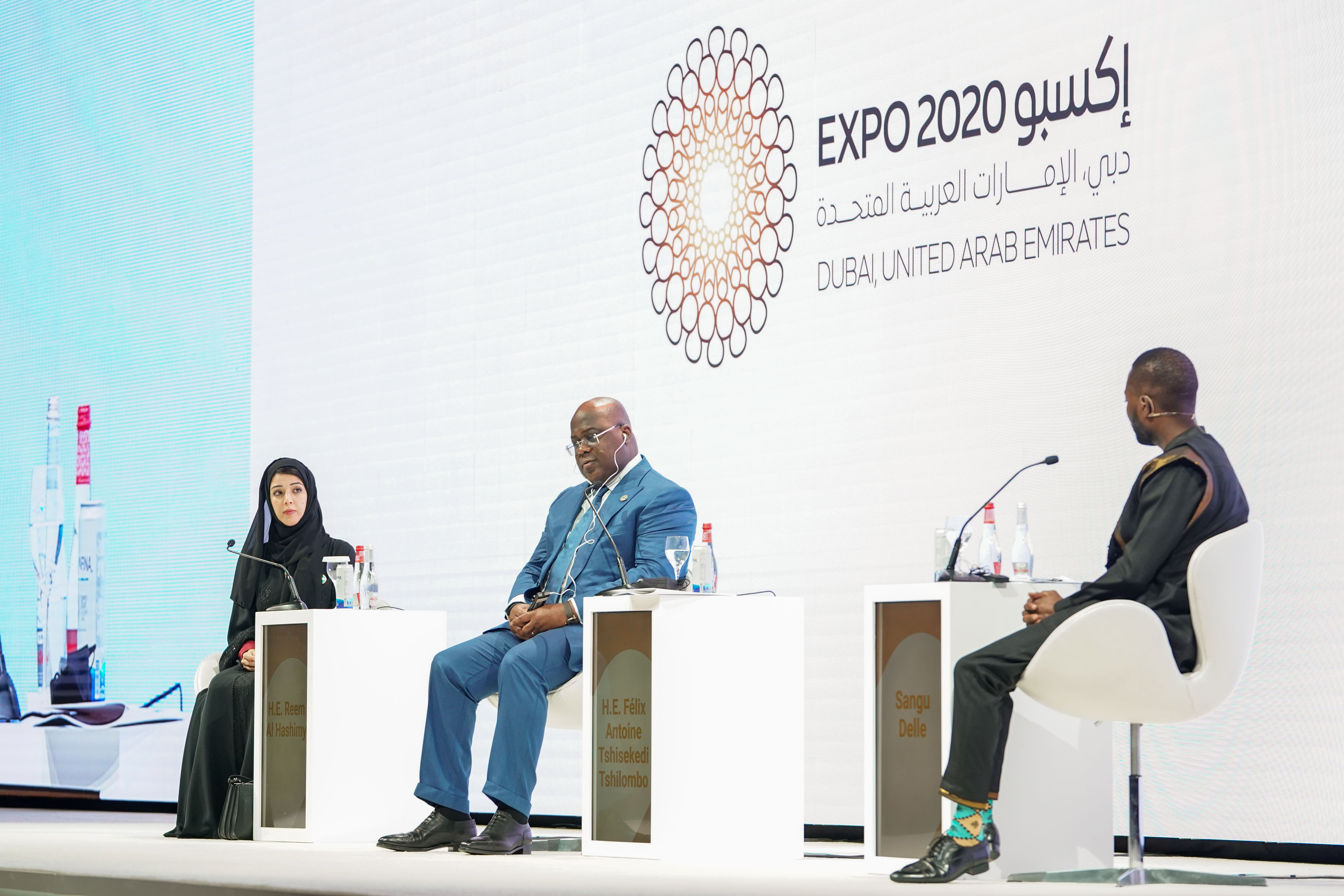 وقد حضر سمو الشيخ حمدان بن محمد بن راشد آل مكتوم جلسة تحدث فيها فخامة فيلكس تشيسكيدي، رئيس جمهورية الكونغو الديمقراطية الصديقة  وناقش مع معالي ريم الهاشمي، وزيرة الدولة لشؤون التعاون الدولي المدير العام لإكسبو 2020 دبي، كيفية مساهمة الشركات الإماراتية في تحفيز النمو المستدام في الكونغو، وتسريع التكامل والشراكات الإقليمية عبر البنية التحتية والاستثمارات والتجارة. وتطرقت الجلسة، التي حملت عنوان "استكشاف قدرات أفريقيا"، إلى الجهود التي تبذلها الحكومة الكونغولية في تطوير البنية التحتية، والاستثمار في مجالات الطاقة الشمسية الهجينة.