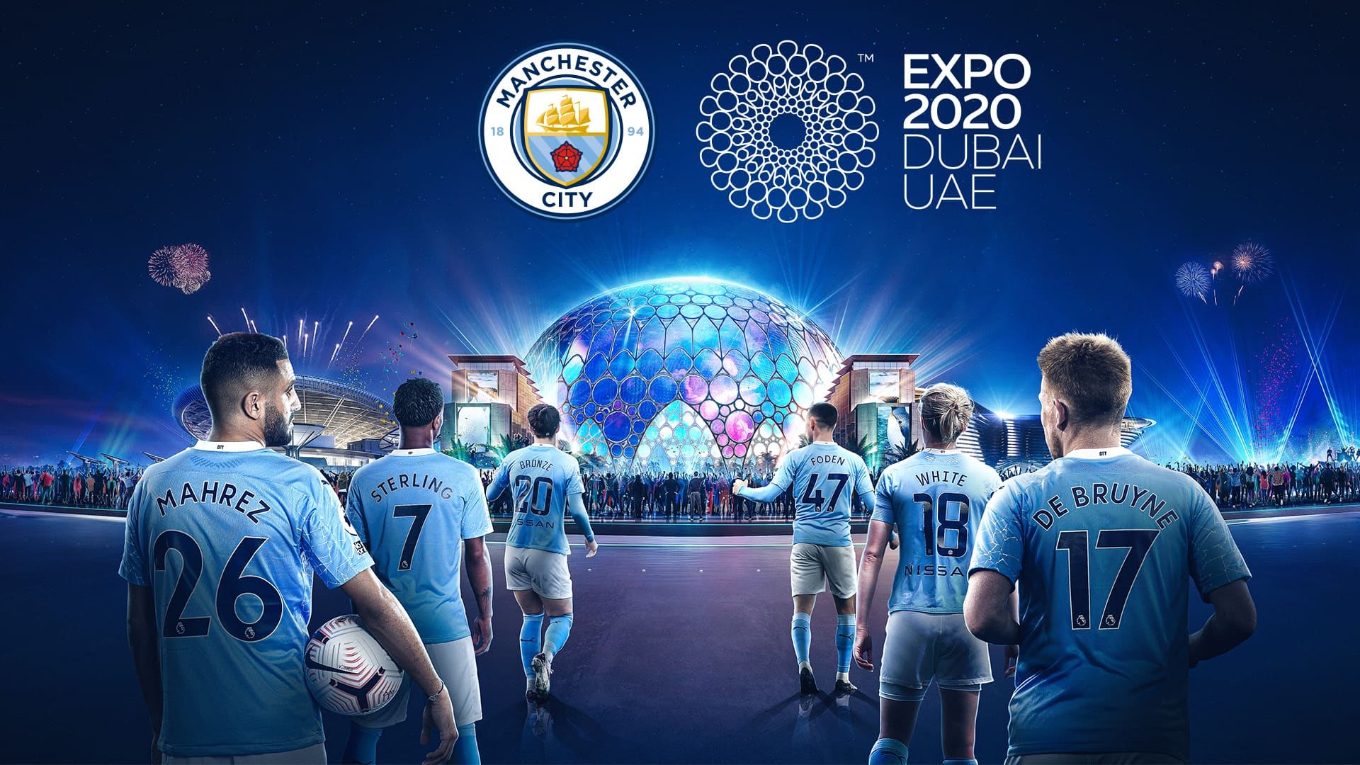 وقد شهد الشهر الماضي الإعلان عن إكسبو 2020 دبي شريكا جديدا لمانشستر سيتي ليكون حاضراً على قمصان التدريب لفرق الرجال والسيدات. وتظهر العلامة التجارية لإكسبو 2020 دبي عبر استاد الاتحاد ومنشآت تدريب أكاديمية السيتي لكرة القدم بالإضافة إلى عرضها على محتوى السيتي ومنصاته الرقمية.
