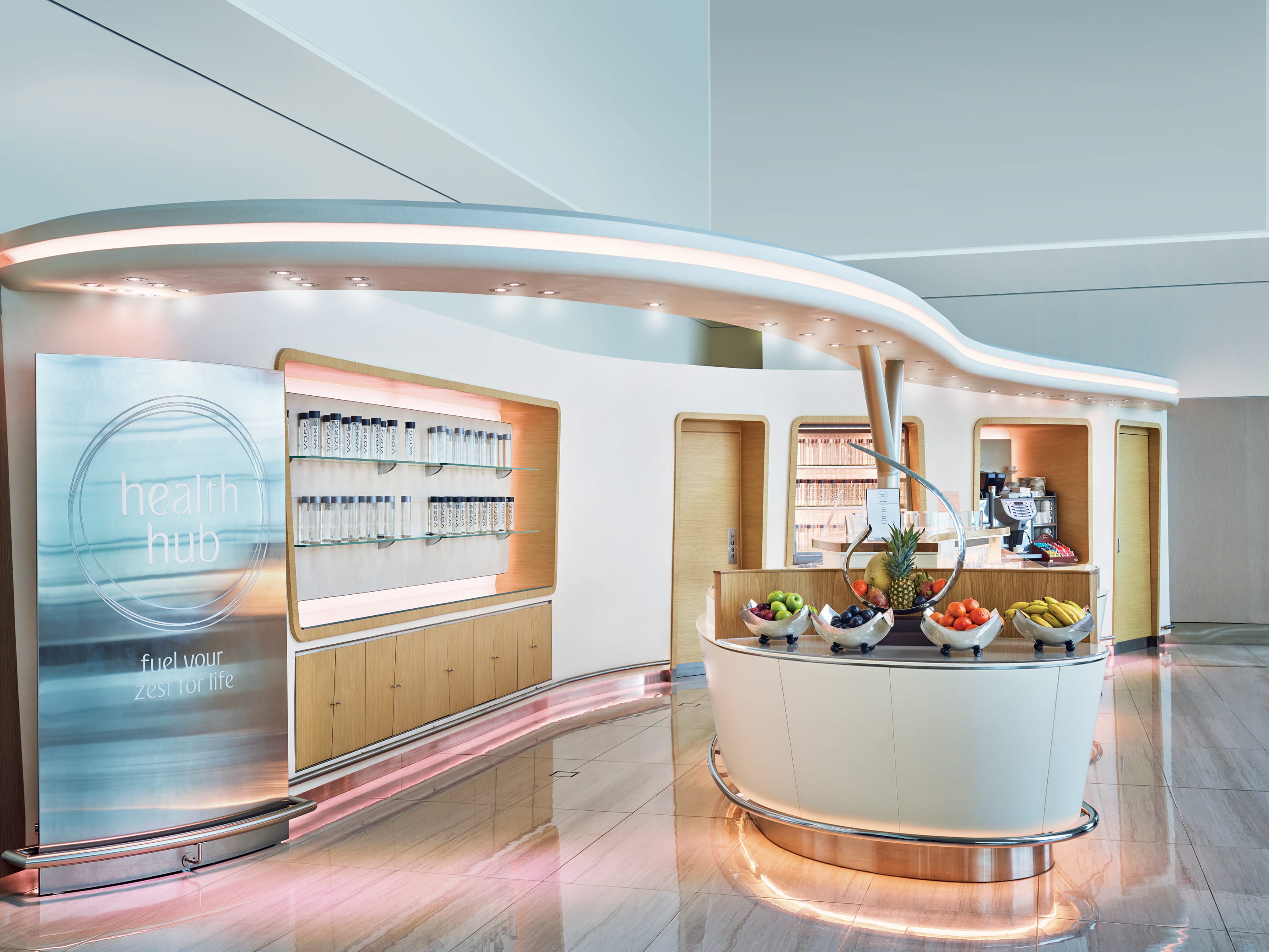 وتحتوي الصالات أيضاً على حمّامات شاور سبا ومرافق لتغيير ملابس الأطفال، وشاشات تلفزيونية وخدمة واي فاي مجانية، وأجهزة كمبيوتر وطابعات، ومناطقة لشحن الأجهزة، بالإضافة إلى مركز أعمال مجهز بالكامل، بما في ذلك غرف اجتماعات مع أجهزة عرض ومحطات عمل فردية تعمل باللمس.