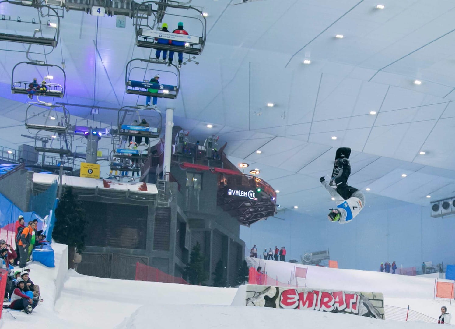 وتشهد قاعة سكي دبي خلال شهر أكتوبر تنظيم بطولات وأنشطة رياضية متنوعة وسط الثلوج ضمن فعاليات تحدي دبي للياقة، كما يقام سباق الرابطة الفرنسية للتزلج على الجليد، ويقام المعسكر التدريبي الدولي للتزلج الحر والتزلج على الألواح الذي ينظمه الاتحاد الدولي للتزلج بالتعاون مع اتحاد الإمارات للرياضات الشتوية، ويعقبه المسابقات الدولية للتزلج الحر والتزلج على الألواح، كما سيتم تنظيم بطولة كأس آسيا للألعاب البارالمبية الدولية للتزلج على الألواح، وبطولة الإمارات للتزلج الحر، وتقام هذه البطولات في إطار إعداد الرياضيين الوطنيين لدورة الألعاب الأولمبية الشتوية.