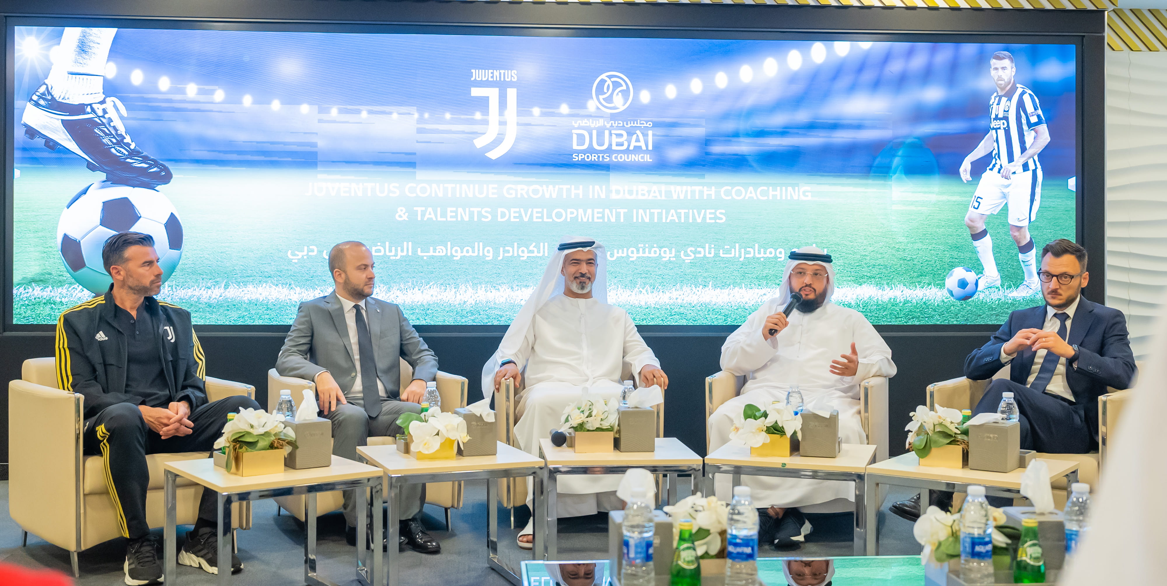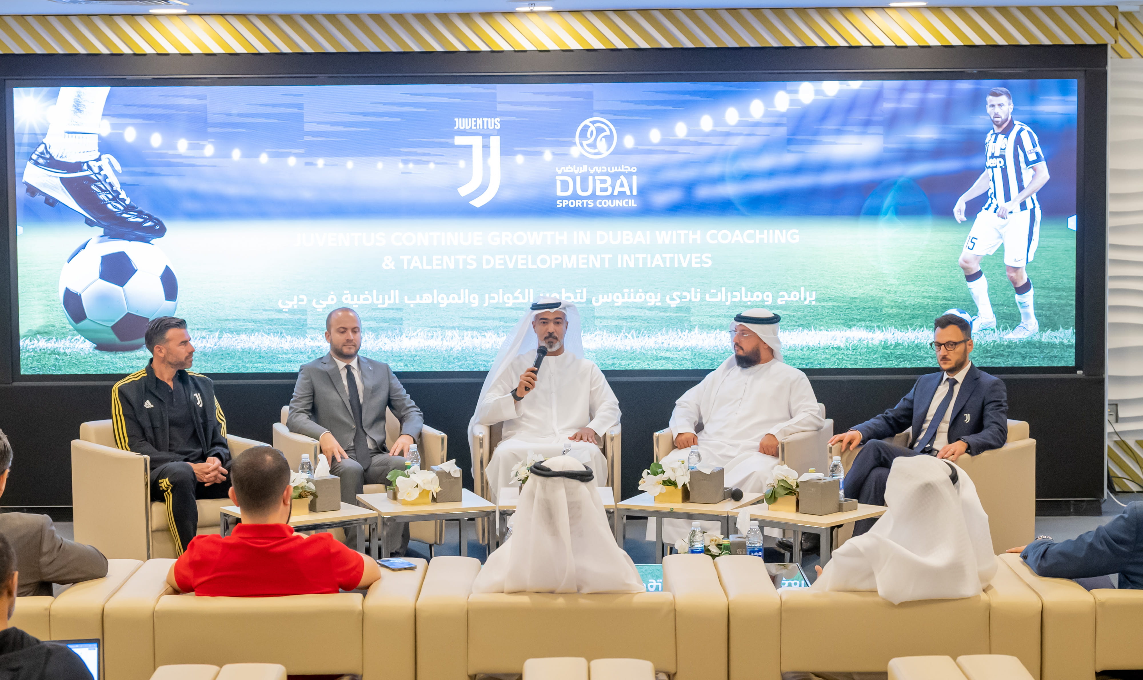 كما تحدث في المؤتمر الصحفي كل من محمد لعجم، رئيس مجلس إدارة إف إف جي سبورتس مانجمنت المسؤولة عن أكاديمات يوفنتوس بالإمارات، وفابريزيو بوجليسي، الرئيس التنفيذي في الشركة، ودافيد فورناكا، مدير أكاديمية يوفنتوس.