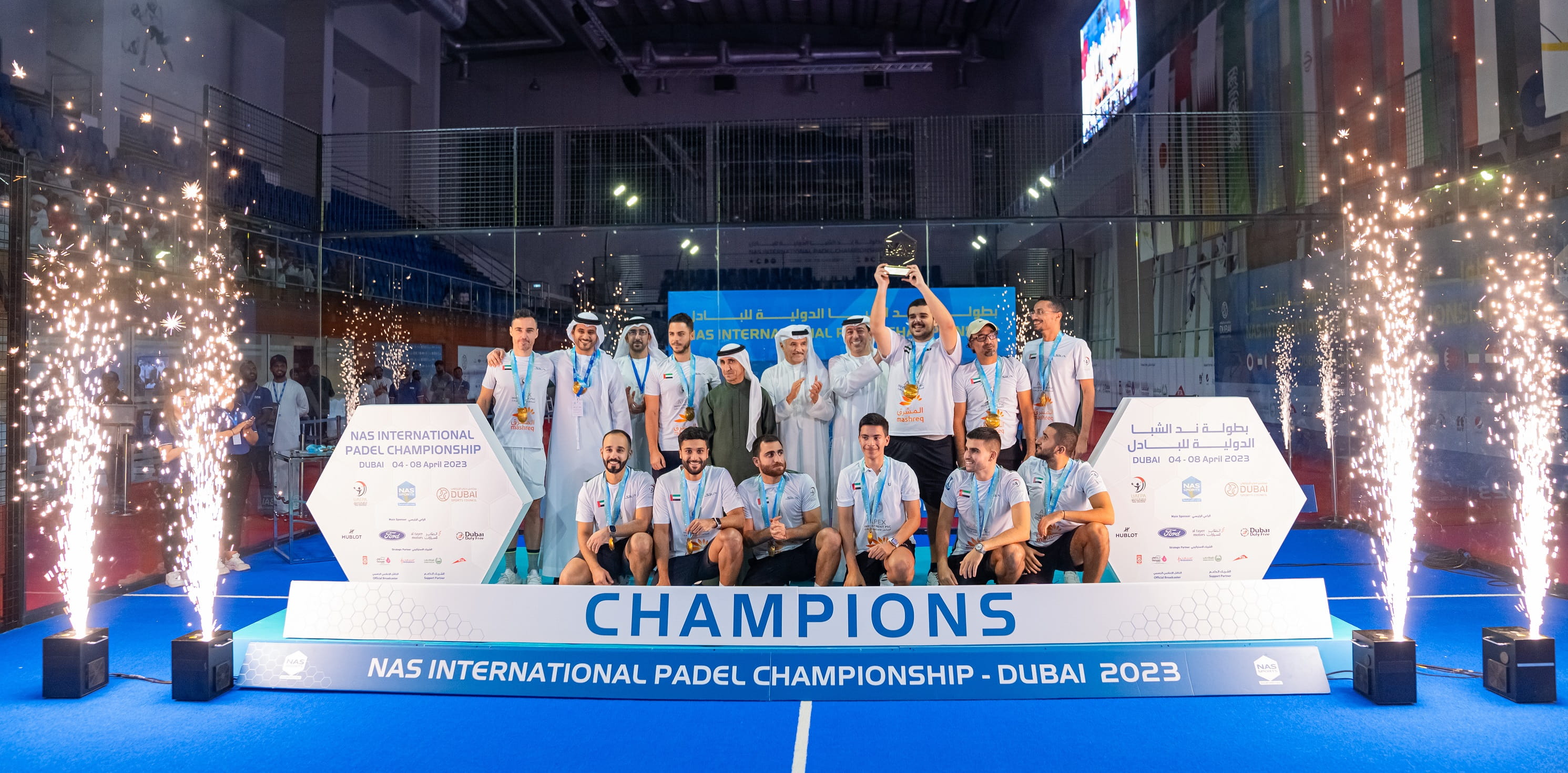 وتَوَّجَ الشيخ سعيد بن مكتوم بن جمعة آل مكتوم رئيس اتحاد الإمارات للبادل الرئيس الفخري للاتحاد العربي للبادل منتخب الإمارات بلقب البطولة، بحضور سعيد حارب أمين عام مجلس دبي الرياضي رئيس اللجنة المنظمة لدورة ند الشبا الرياضية، وخليفة يوسف خوري نائب رئيس اتحاد الإمارات للبادل، وحسن المزروعي مدير الدورة.