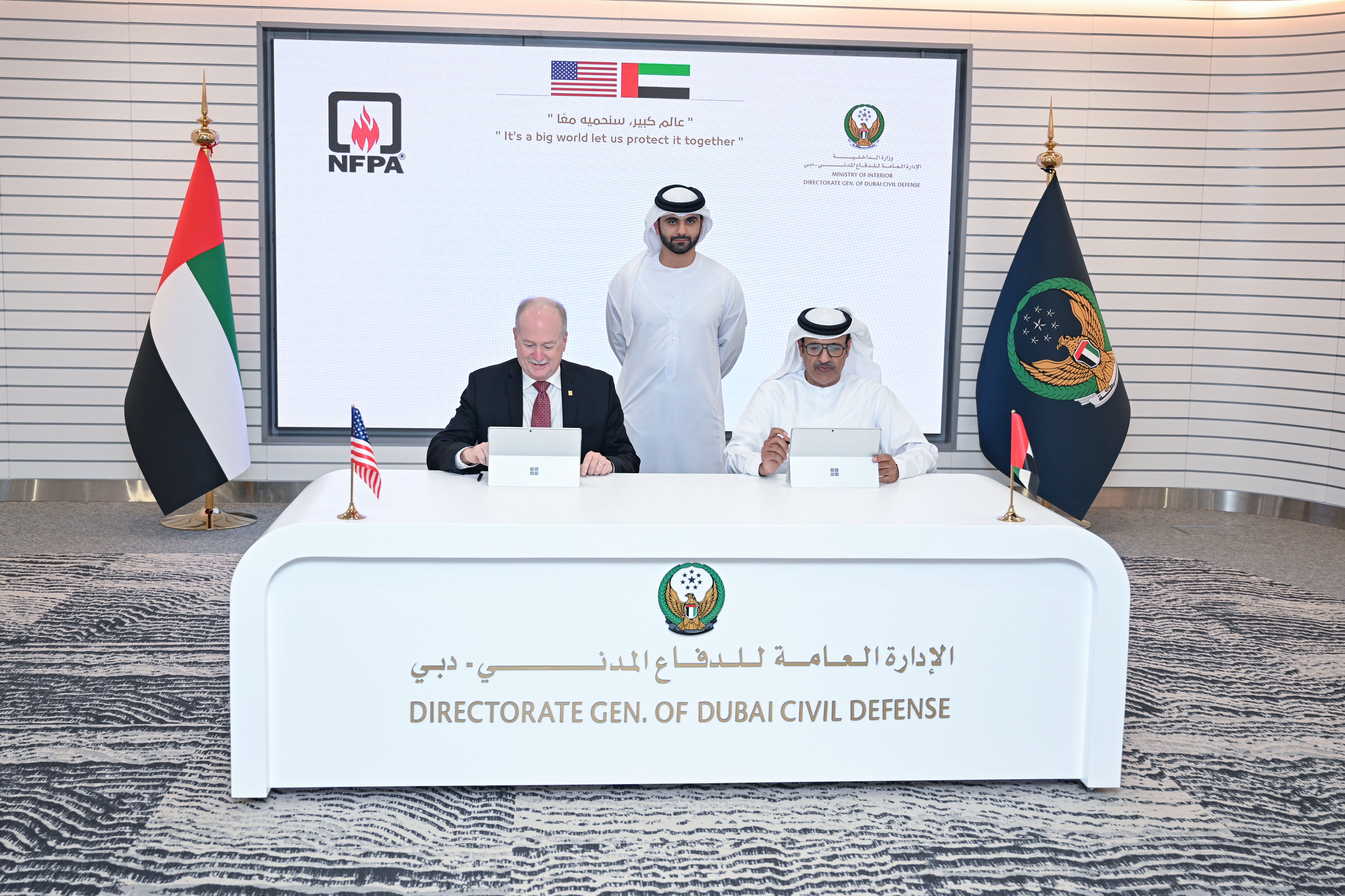شهد سمو الشيخ منصور بن محمد بن راشد آل مكتوم، رئيس اللجنة العليا لإدارة الطوارئ والأزمات والكوارث في دبي، توقيع اتفاقية تعاون بين الإدارة العامة للدفاع المدني في دبي والهيئة الوطنية للحماية من الحرائق، وهي الأكبر عالمياً في مجال الإطفاء ومقرها الولايات المتحدة الأمريكية، حيث قام بتوقيع الاتفاقية سعادة الفريق خبير راشد ثاني المطروشي، المدير العام للإدارة العامة للدفاع المدني بدبي، وجيم بولي، الرئيس والمدير التنفيذي للهيئة الوطنية للحماية من الحرائق، بحضور مساعدي المدير العام وعدد من كبار الضباط ومديري الإدارات بالإدارة.