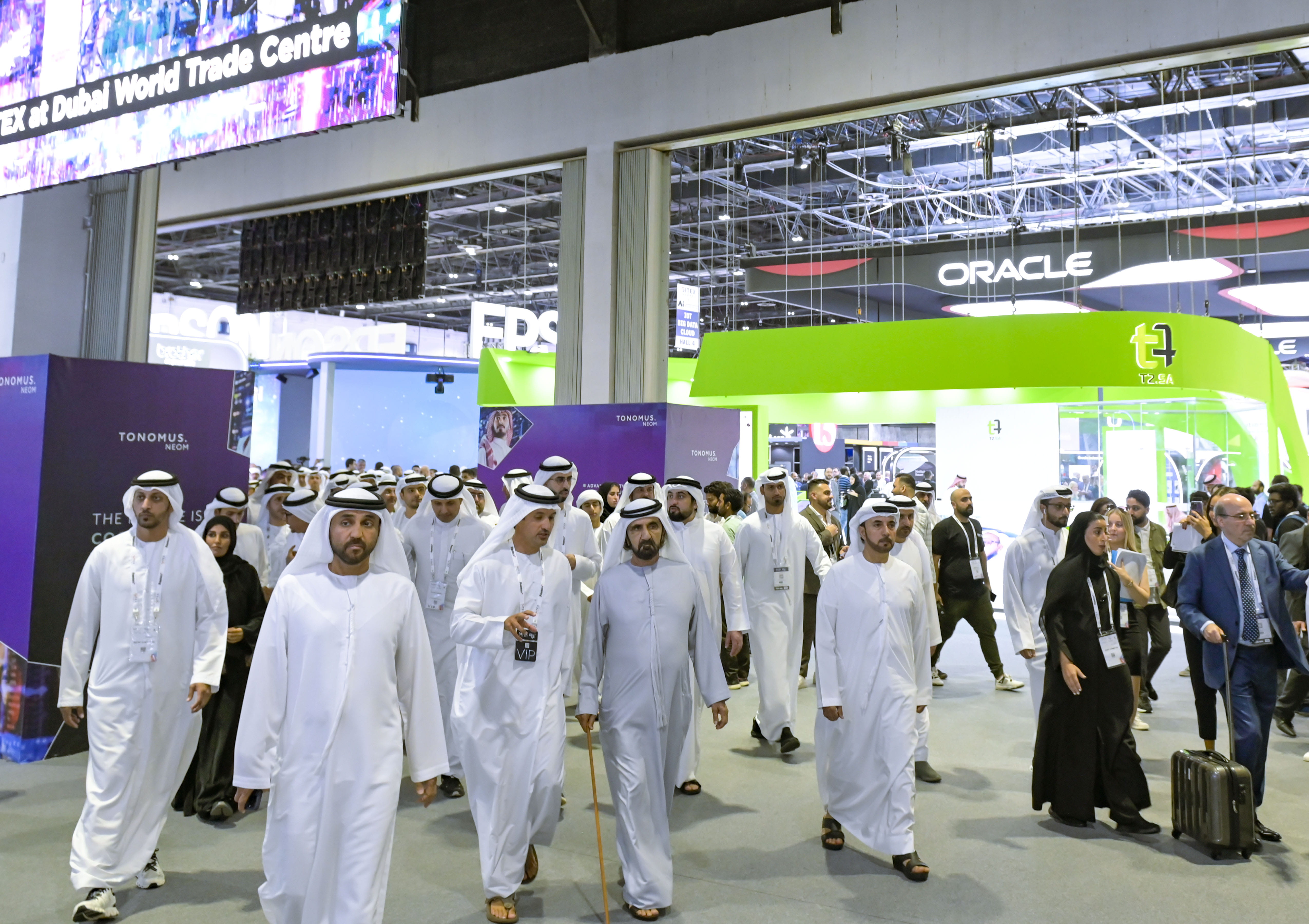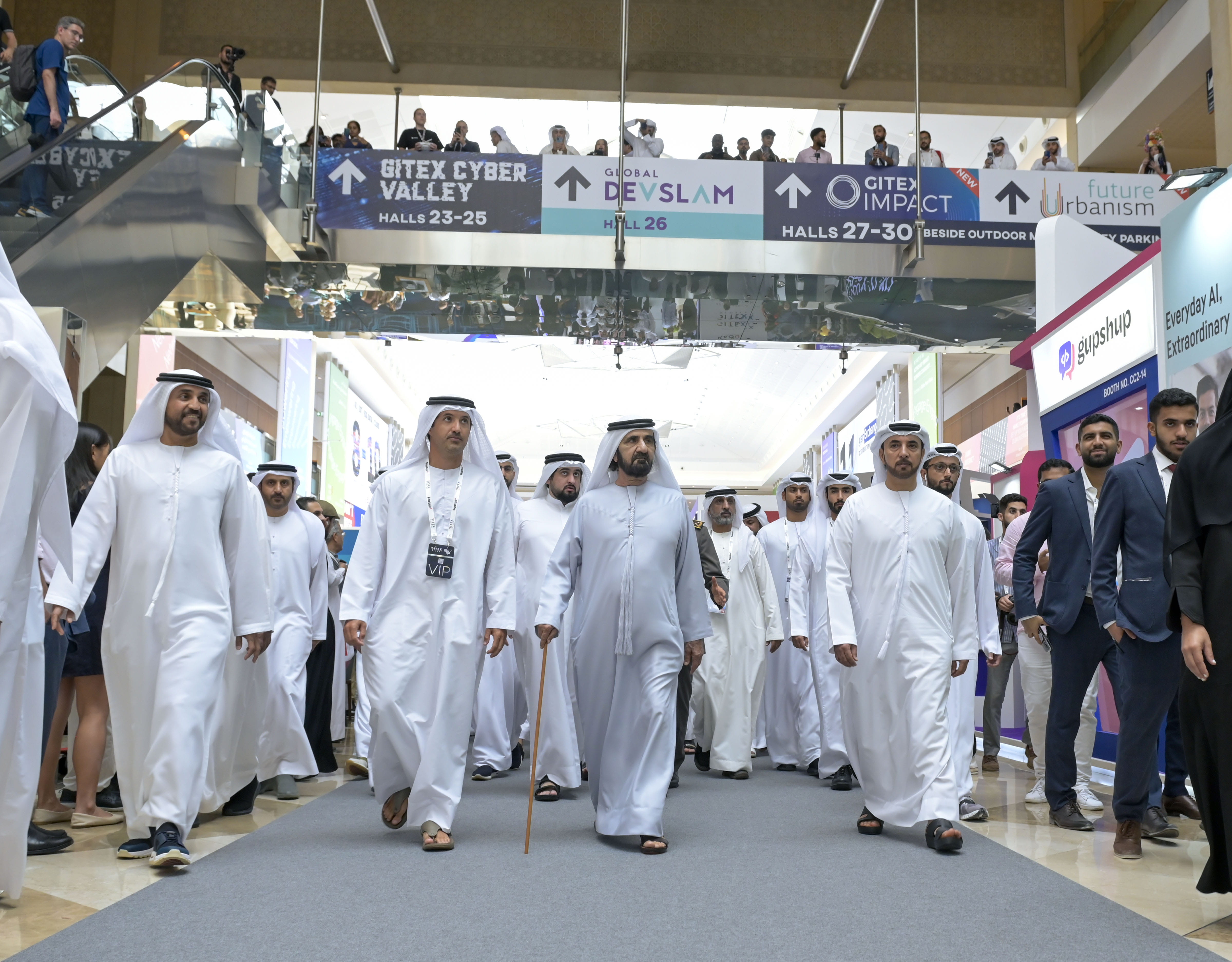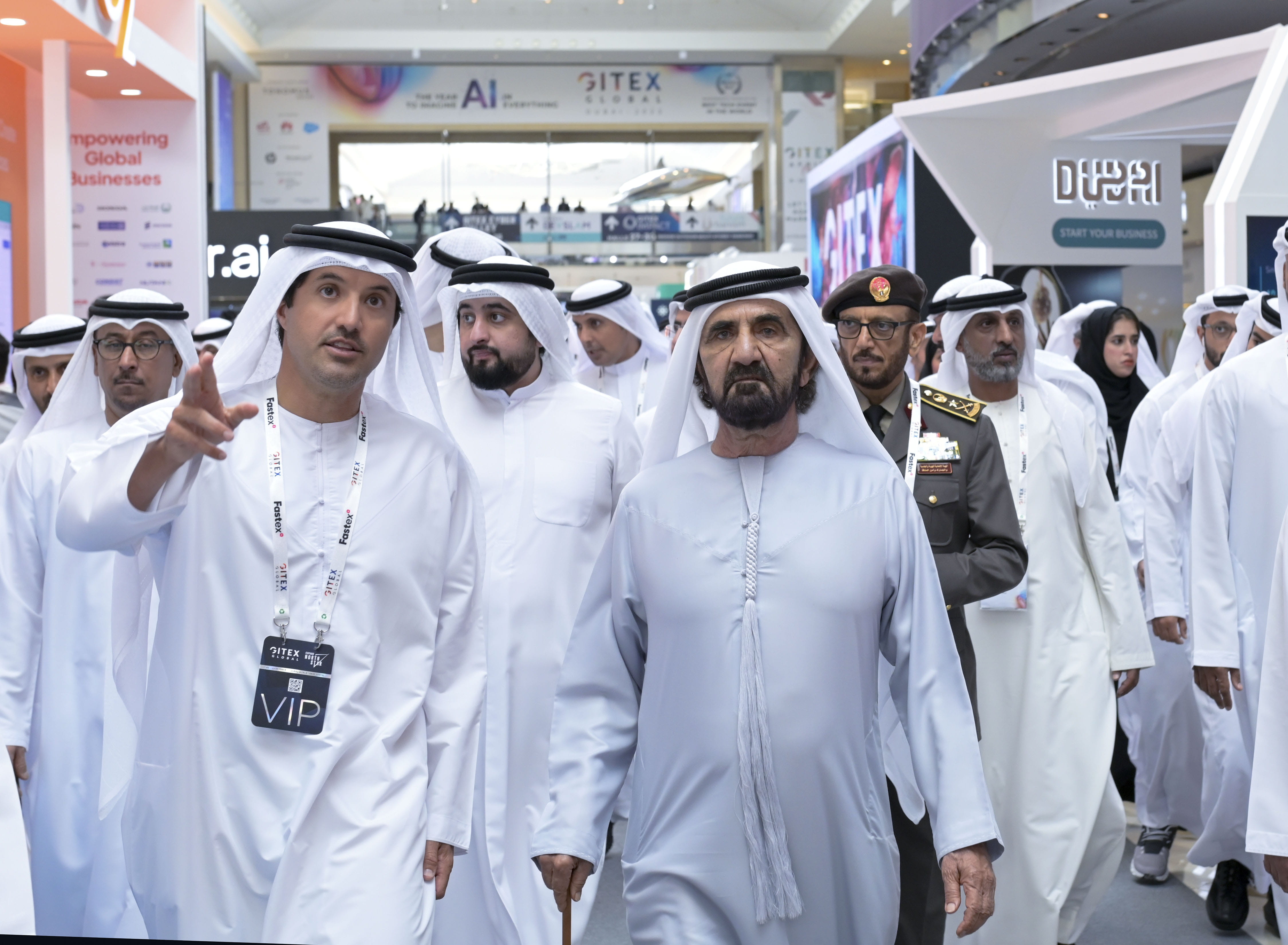 واطلع صاحب السمو الشيخ محمد بن راشد آل مكتوم، خلال الزيارة التي رافقه خلالها معالي عمر سلطان العلماء، وزير دولة للذكاء الاصطناعي والاقتصاد الرقمي وتطبيقات العمل عن بُعد، وسعادة هلال سعيد المري، المدير العام لسلطة مركز دبي التجاري العالمي، وعدد من الوزراء ومديري الدوائر الحكومية، على أحدث التقنيات والحلول التي يتضمنها المعرض وتطرحها الشركات الوطنية والعالمية المشاركة في المعرض هذا العام.