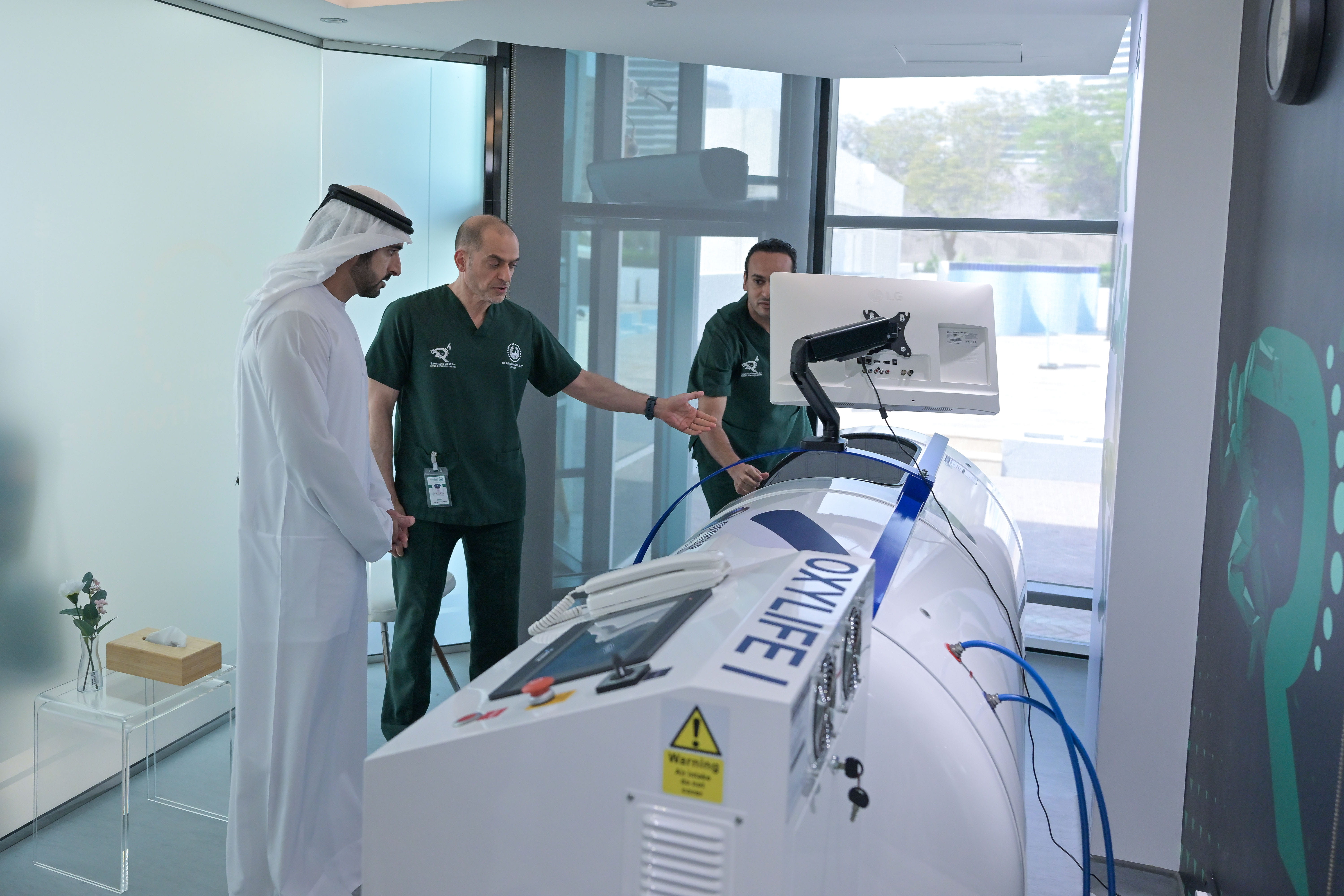 واستمع سمو ولي عهد دبي إلى شرح حول مشروع "عيون"، وهو نظام متقدّم يعتمد على الذكاء الاصطناعي وتحليل البيانات الضخمة لضمان توفير الأمن والأمان للمجتمع، ويتم من خلاله استخدام المراقبة بالكاميرات ذات التقنيات الذكية ضمن منظومة أمنية متكاملة تحت إشراف شرطة دبي، وبالتعاون مع عددٍ من الشركاء في القطاع الخاص، وبدعم ومشاركة الدوائر والمؤسسات الحكومية المعنية.