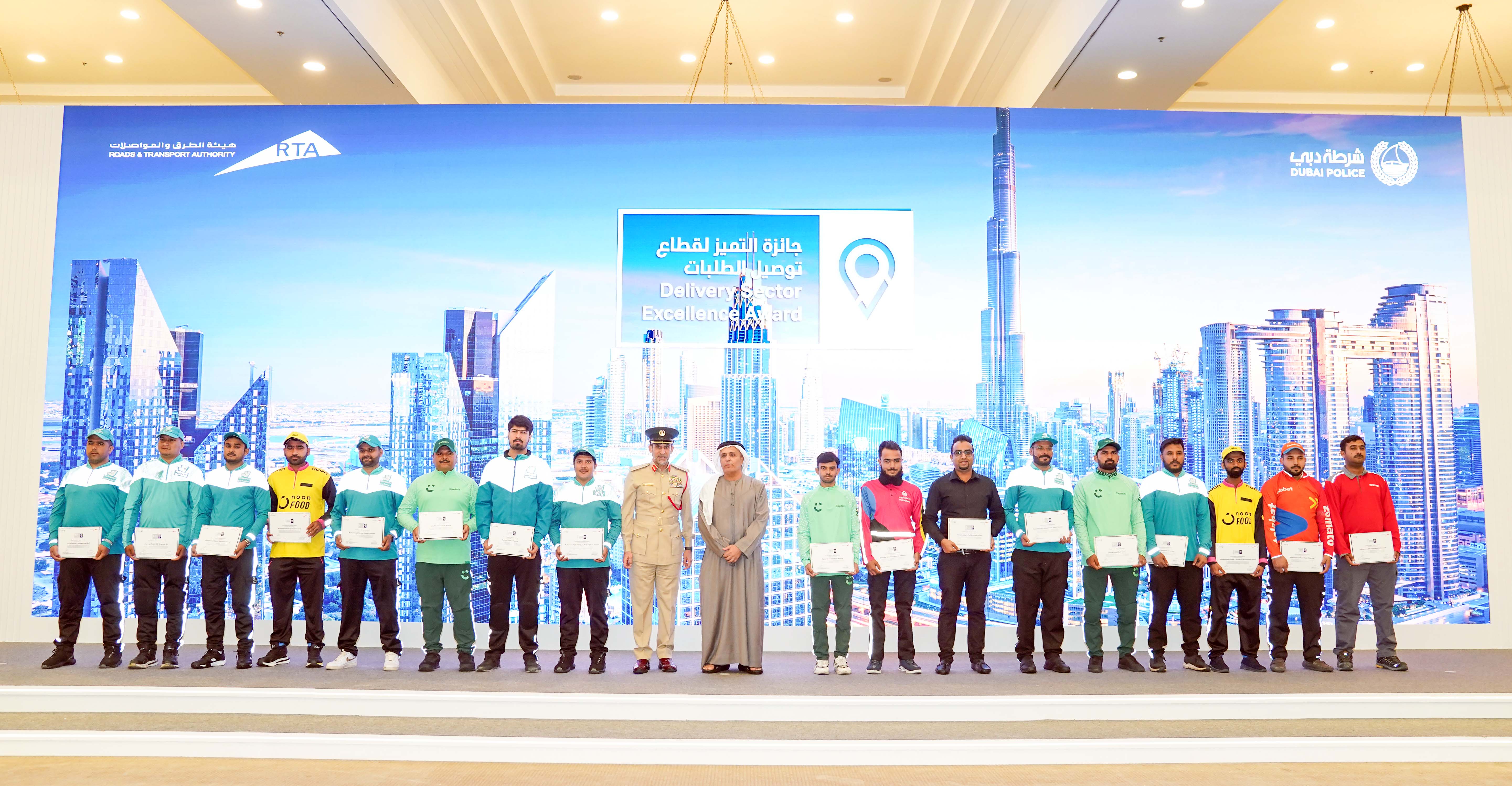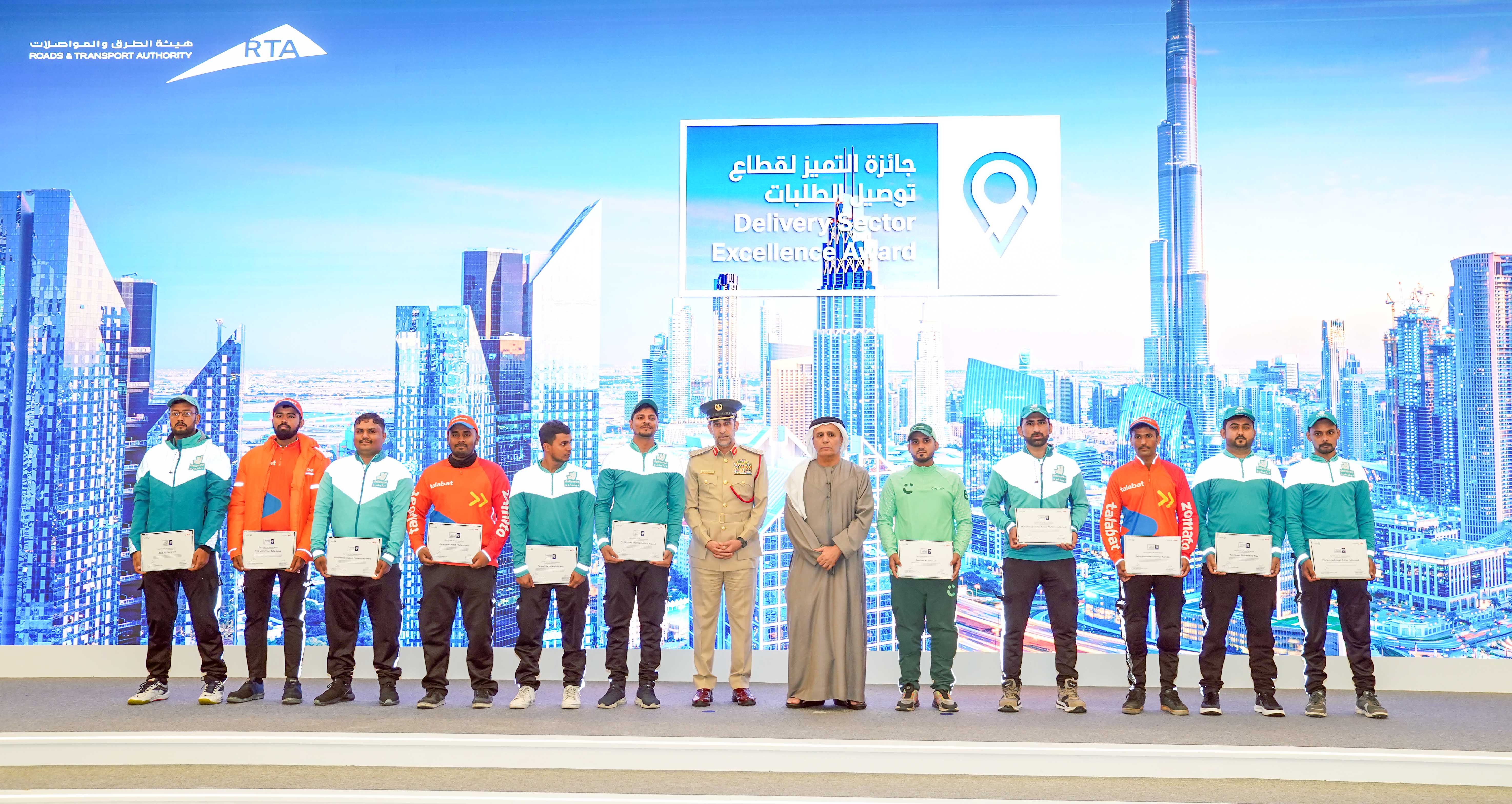 كرم معالي مطر الطاير المفوض العام لمسار البنية التحتية والتخطيط العمراني وجودة الحياة، المدير العام ورئيس مجلس المديرين في هيئة الطرق والمواصلات، ومعالي الفريق عبدالله خليفة المري، القائد العام لشرطة دبي، الشركات والسائقين الفائزين بجائزة التميز لقطاع توصيل الطلبات، التي تعد الأول من نوعها في المنطقة، لتكريم سائقي توصيل الطلبات بهدف رفع مستوى السلامة المرورية على طرق إمارة دبي، وتشجيع شركات وسائقي دراجات توصيل الطلبات على الالتزام بقوانين وأنظمة السير والمرور، وتطوير الخدمات التي تقدمها الشركات للمتعاملين.