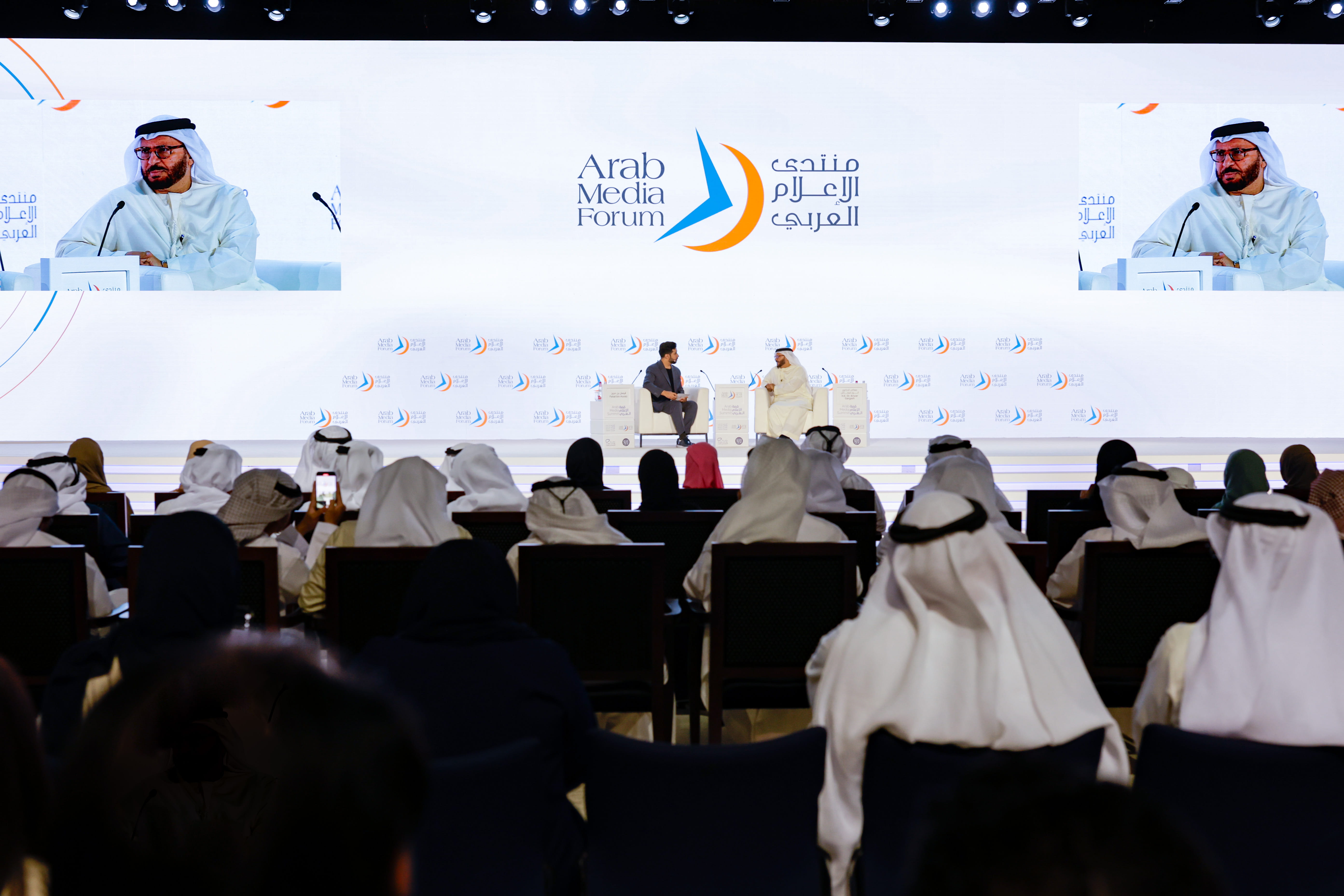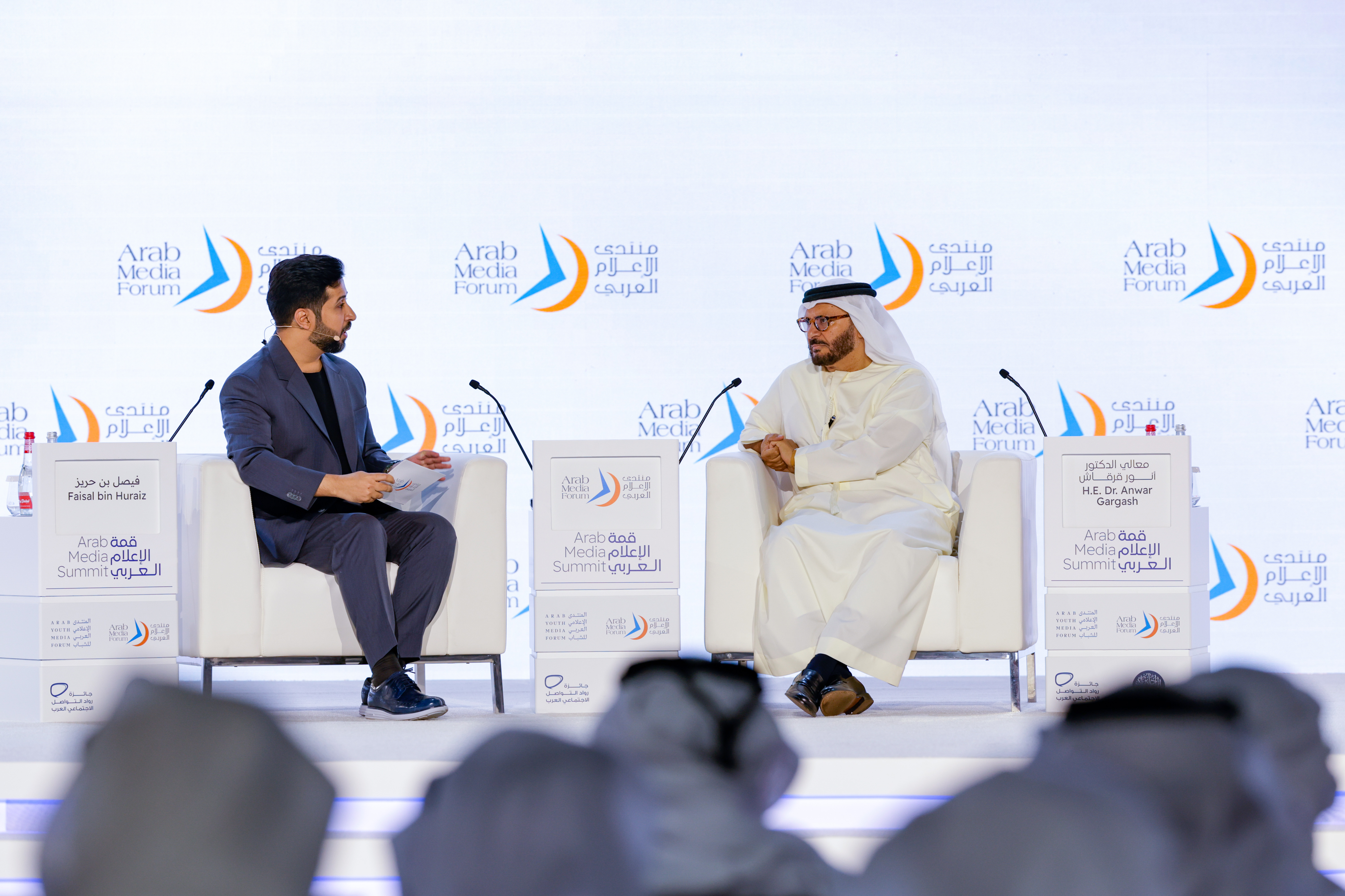 شهد سمو الشيخ منصور بن محمد بن راشد آل مكتوم رئيس مجلس دبي الرياضي، وسمو الشيخة لطيفة بنت محمد بن راشد آل مكتوم، رئيسة هيئة الثقافة والفنون في دبي، اليوم الأربعاء جلسة حوارية استضافت معالي الدكتور أنور بن محمد قرقاش، المستشار الدبلوماسي لصاحب السمو رئيس الدولة، في اليوم الختامي لمنتدى الإعلام العربي الـ22، ضمن فعاليات "قمة الإعلام العربي" في دبي، وسط حضور إعلامي كبير.