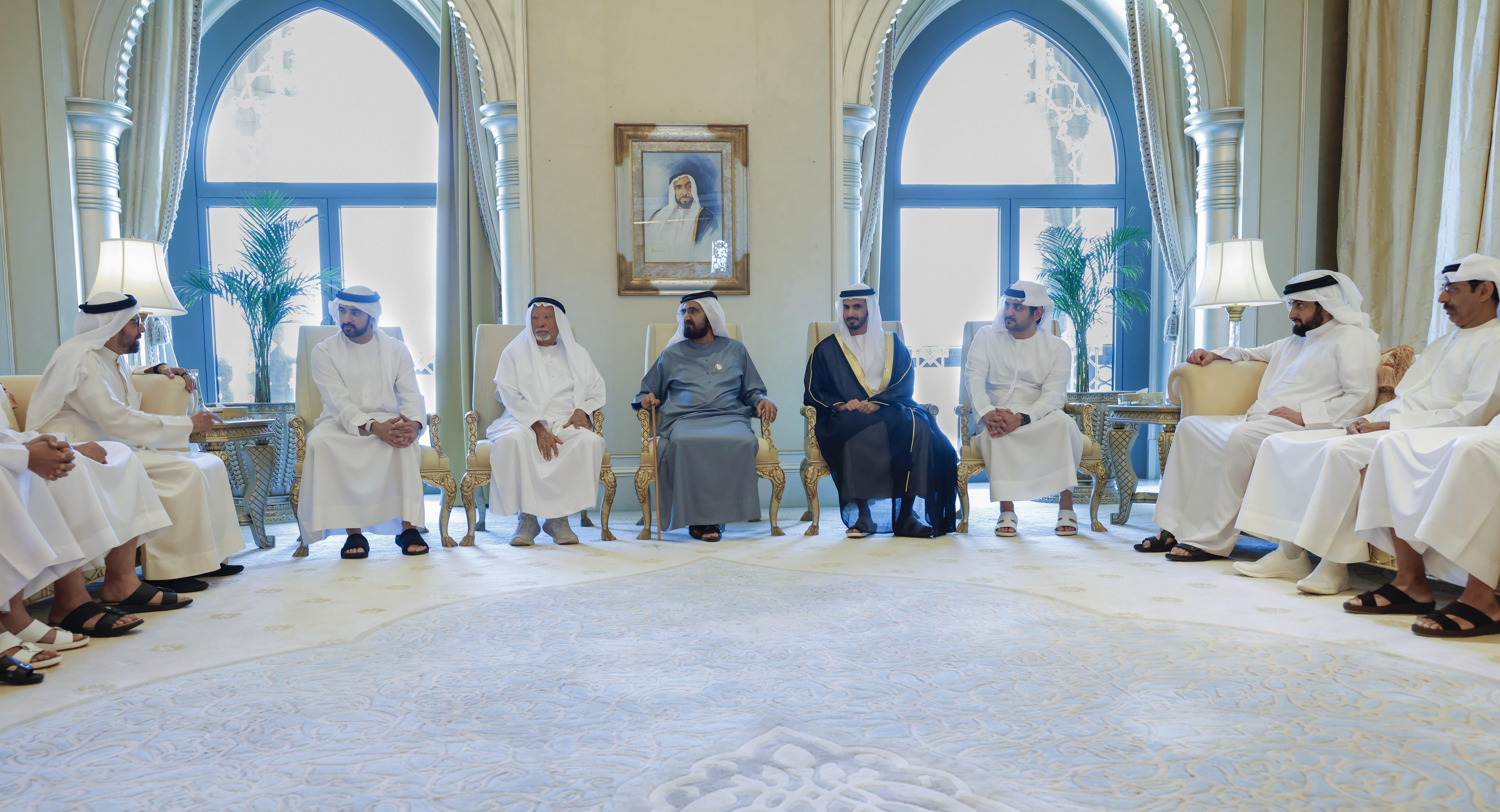 حضر صاحب السمو الشيخ محمد بن راشد آل مكتوم، نائب رئيس الدولة رئيس مجلس الوزراء حاكم دبي، رعاه الله، اليوم (الاثنين)، يرافقه سموّ الشيخ حمدان بن محمد بن راشد آل مكتوم، ولي عهد دبي نائب رئيس مجلس الوزراء وزير الدفاع، رئيس المجلس التنفيذي لإمارة دبي، وسمو الشيخ مكتوم بن محمد بن راشد آل مكتوم، النائب الأول لحاكم دبي، نائب رئيس مجلس الوزراء وزير المالية، وسموّ الشيخ أحمد بن محمد بن راشد آل مكتوم، النائب الثاني لحاكم دبي، حفل الاستقبال الذي أقامه علي راشد عبد الله النعيمي، بمناسبة زفاف نجله راشد، على كريمة عبد الله خليفة سيفان السويدي، في أبوظبي.