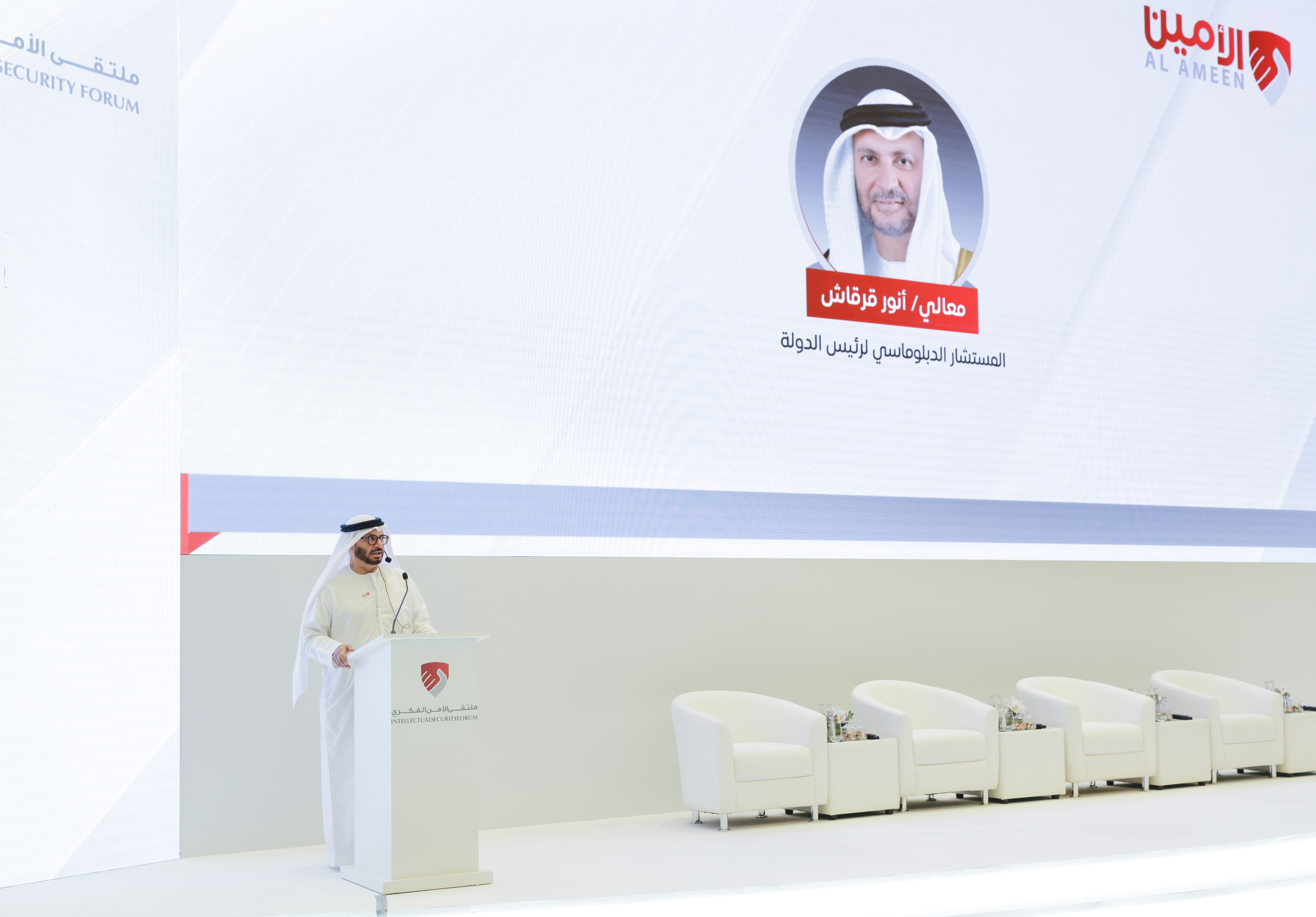 وخلال كلمته في مستهل الحدث، أكد معالي الدكتور أنور قرقاش أهمية تمتع الموظف الحكومي بقيم أخلاقية تتسق مع قيم المجتمع الإماراتي، وأن يتخذ من قادته نموذجاً يحتذى به في التواضع والإيجابية والمصداقية في القول والعمل، مضيفاً أن الموظف الحكومي في دولة الإمارات هو موظف "عالمي"، إذ يتعامل مع العديد من الجنسيات والثقافات دون أي تمييز ، ليكون مساهماً وعنصراَ فاعلاً في تحقيق رؤى واستراتيجيات القيادة الرشيدة.