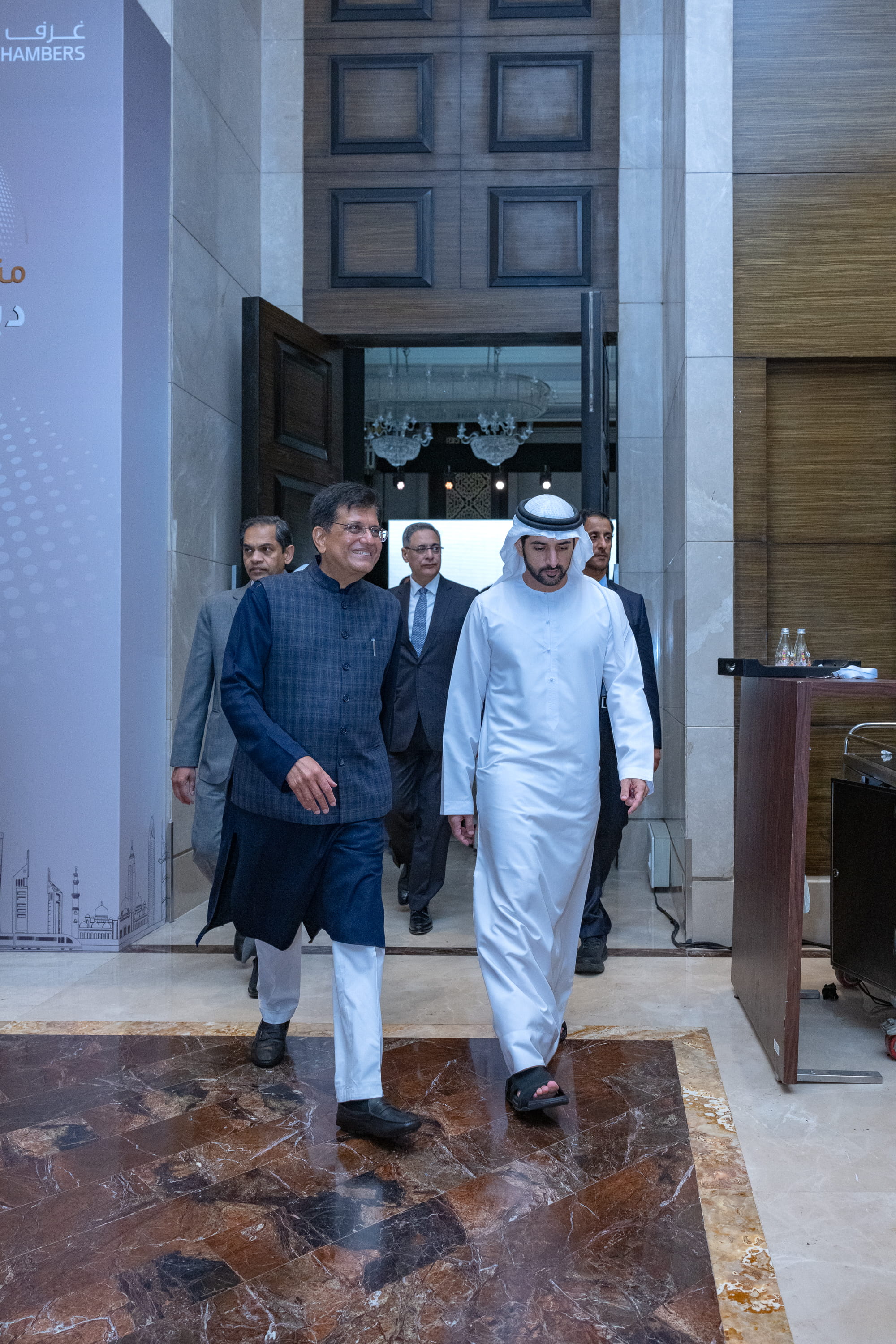 التقى سموّ الشيخ حمدان بن محمد بن راشد آل مكتوم، ولي عهد دبي، نائب رئيس مجلس الوزراء وزير الدفاع، في مدينة مومباي، معالي بيوش غويال، وزير التجارة والصناعة الهندي، وذلك في إطار الزيارة الرسمية التي يقوم بها سموّه إلى جمهورية الهند.